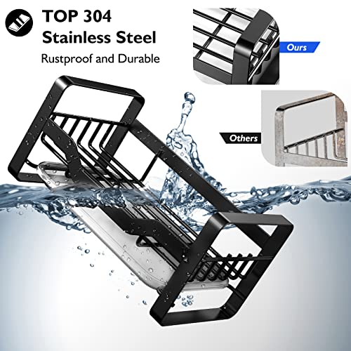 Kitchen Sink Caddy Sponge Holder,Organizer for Soap Brush Dispenser,Countertop Sink Caddy Organizer with Removable Drain Tray