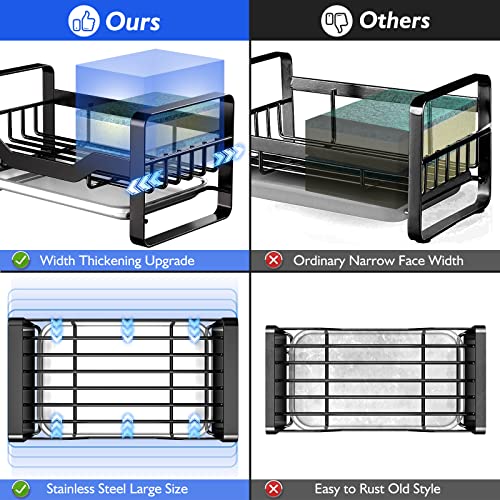 - 【Larger Capacity】Extended to 4 inches in width and 7.15 inches in length. Compared with other kitchen sink sponge holder , the length and width are improved. Therefore, this sponge holder can bring more storage space and improve the storage capacity. The Kontoyo sponge holder is perfect for storing sponges,dish soap,soap dispenser,brushes. Keep your kitchen sink counter clean and tidy