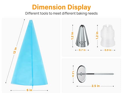 - Essential Cake Decorating Kit: 24 numbered & easy to use stainless steel piping tips, 2 reusable piping bags, 3 shapes of cake scraper, 2 reusable converters, 1 flower nail, 1 storage box that keeps everything organized. With just a few key baking tools, you'll be able to make cake decorating a piece of cake.