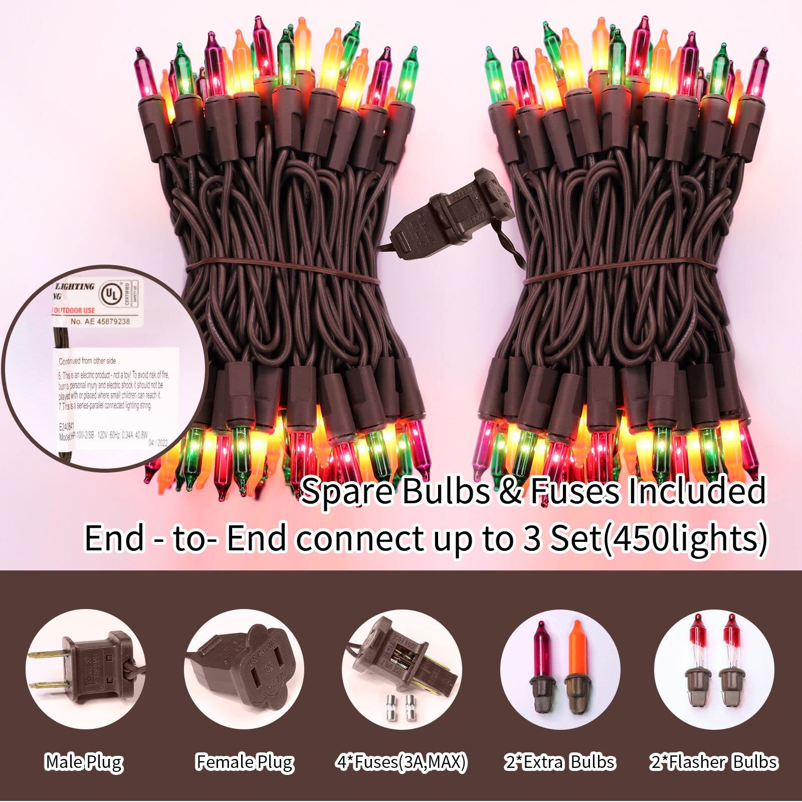 Details: LAMPHOME 31.9FT 150-Count halloween Lights with Brown Wire, String Lights for Holiday Decorations, halloween Tree Lights, Holiday Party, Home, Indoor & Outdoor Use (Orange+Purple+Green)
