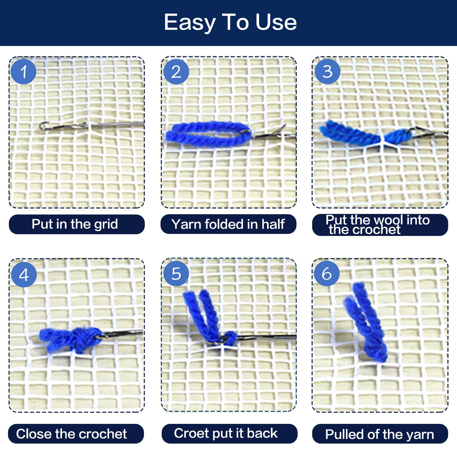 - 1.Package Included:1pcs color instruction manual, 1pcs color printed pattern canvas, 1pcs crochet hook, multiple bundles of yarns.