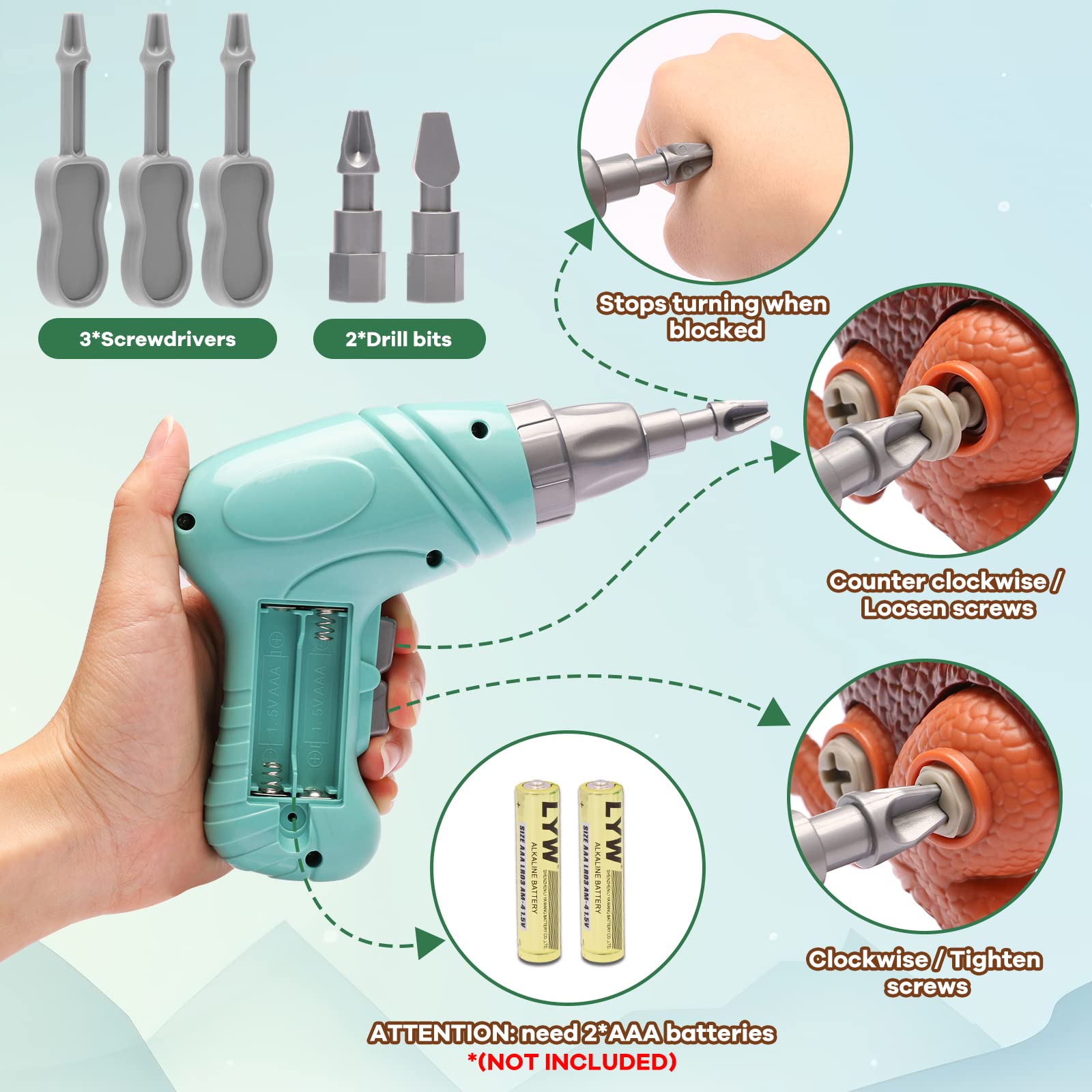 Laradola Dinosaur Toys for 3 4 5 6 7 8 Year Old Boys, Kids Take Apart STEM Construction Building Kids Toys with Electric Drill, Party Christmas Birthday Gifts Boys Girls