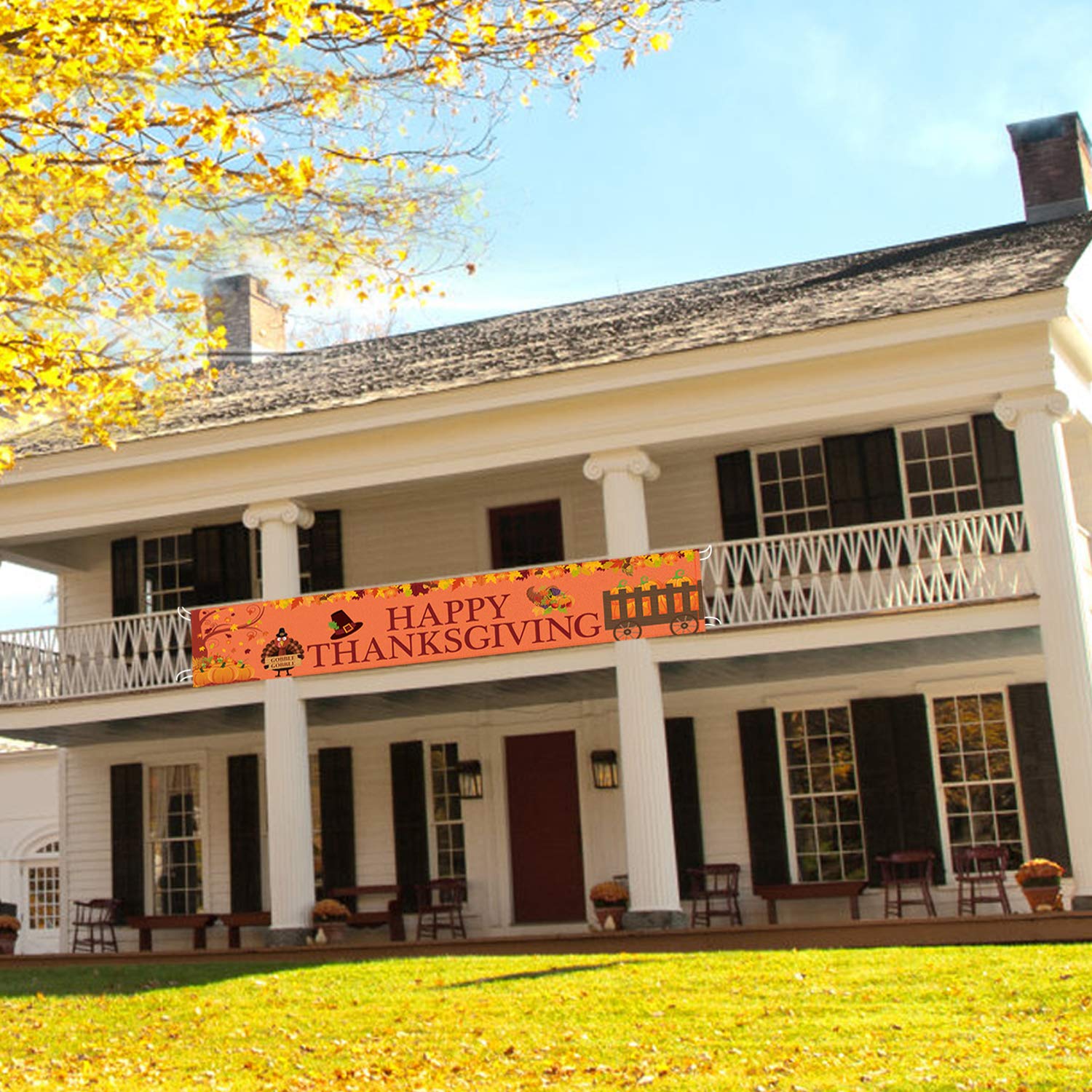 - HAPPY THANKSGIVING BANNER -- Wish your loved ones and friends a Happy Thanksgiving with this "happy thanksgiving" banner. An excellent banner will bring the real fun and unforgettable memory at you Thanksgiving party. Perfect for any Thanksgiving theme parties, home party, Christmas, fall party and other any indoor and outdoor occasions.