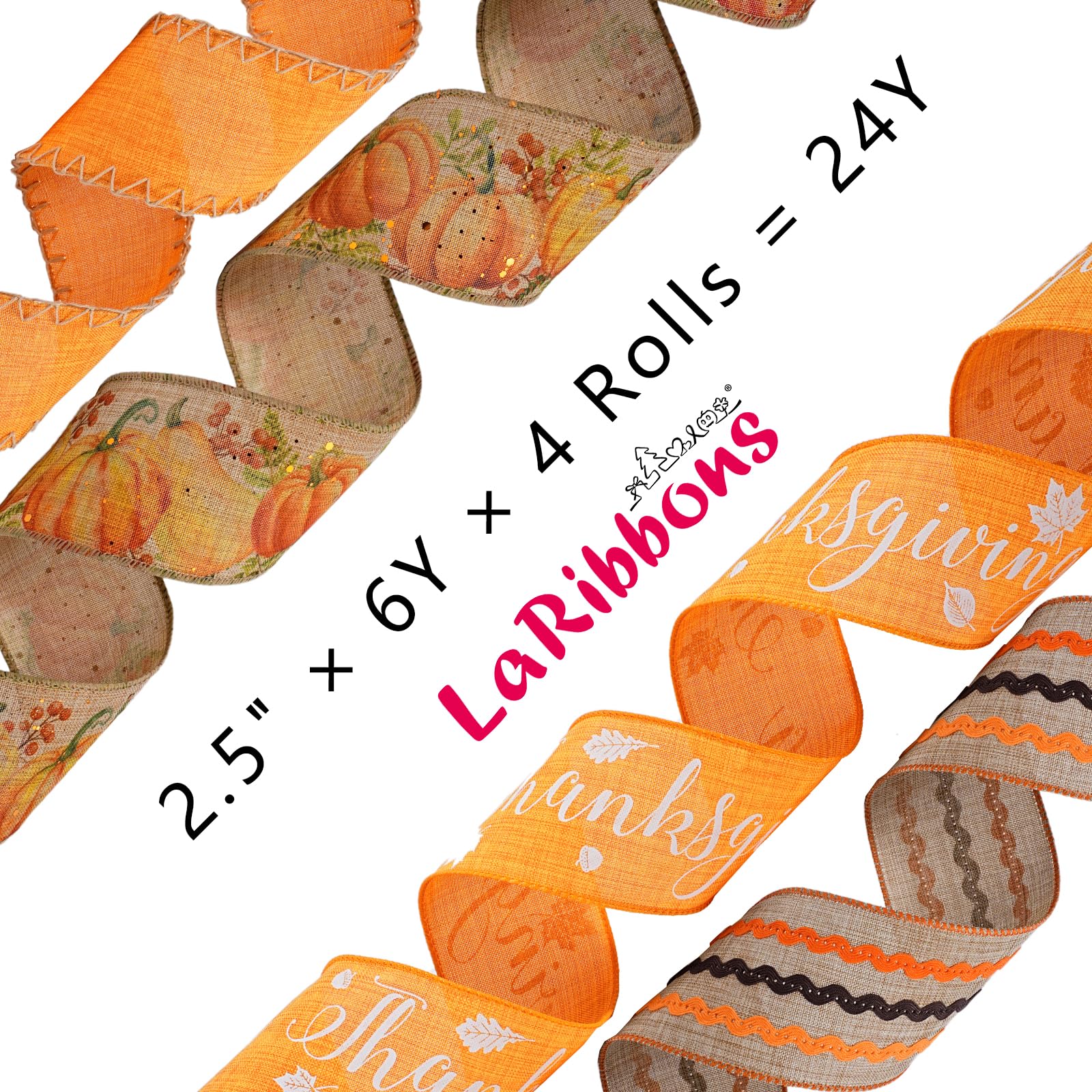 LaRibbons Fall Burlap Plaid Ribbon Wired 2 1/2" x 6 Yards 4 Rolls, Harvest Pumpkins Ribbon for Autumn Wreath Thanksgiving Christmas Farm Gift Wrapping Home Decor