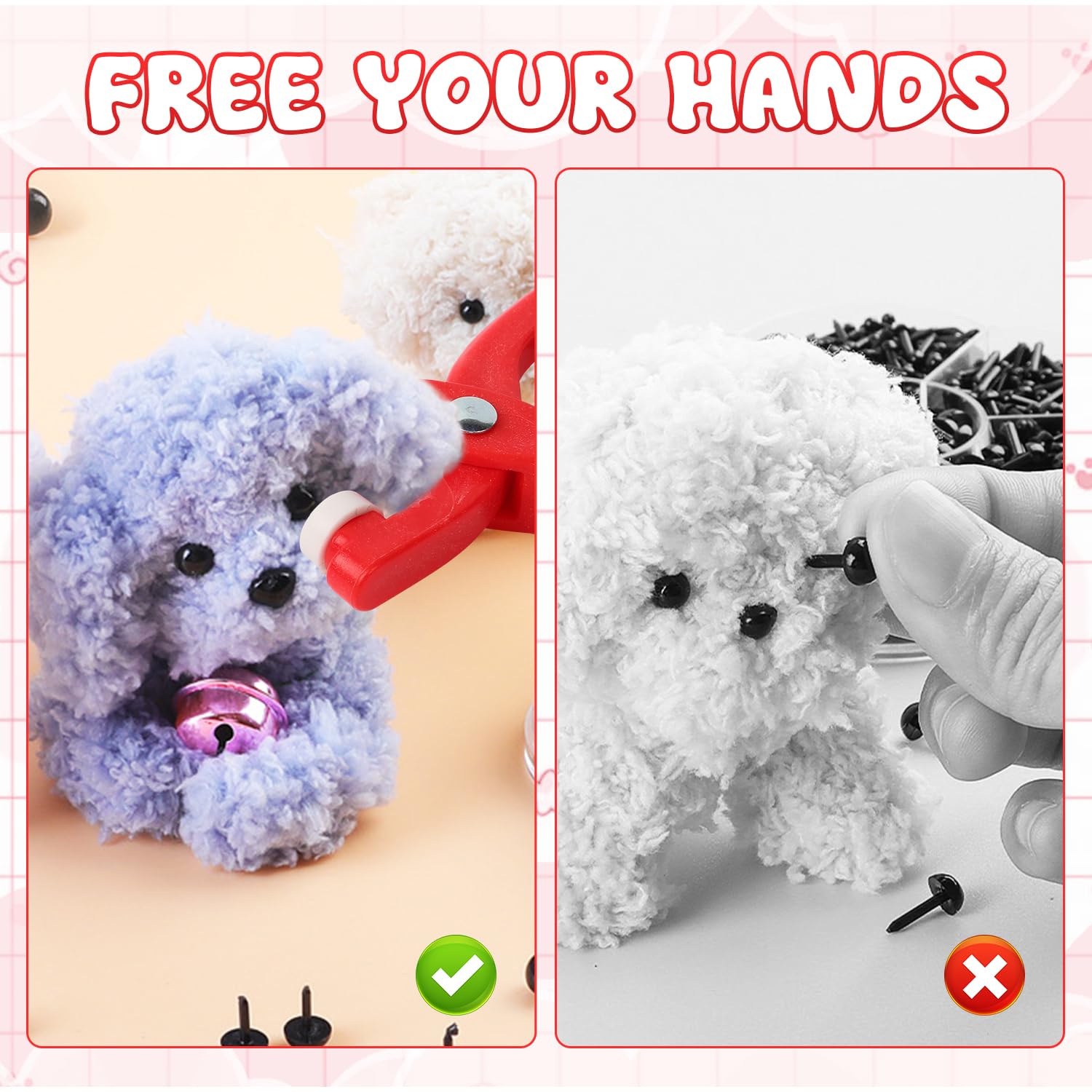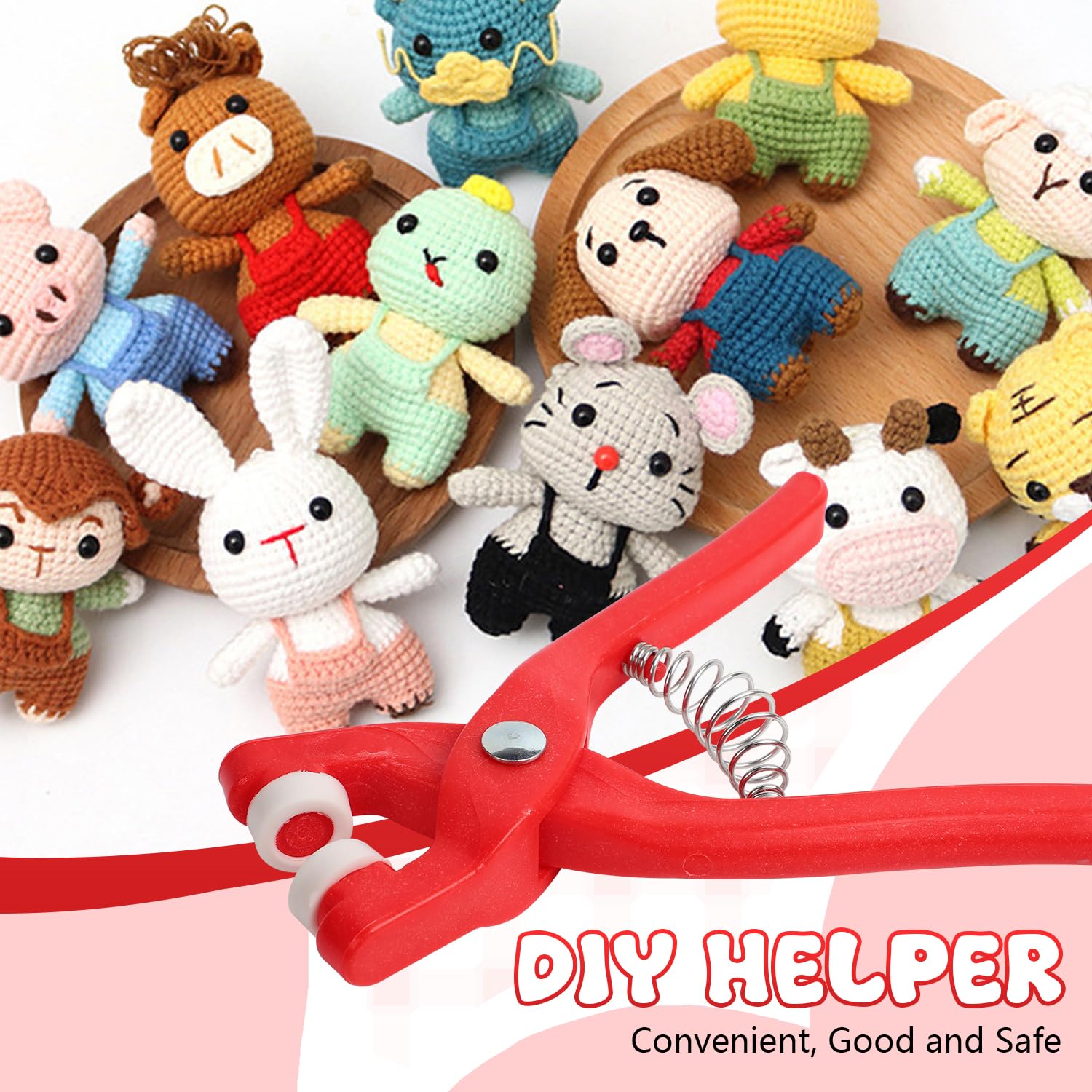 - 【Ergonomic & Easy to Use】With an ergonomic design, it offers more effortless use compared to traditional tools, significantly reducing the time and effort required. Just put the safety eyes through the items and put the washer on the back of eye, push them together easily with our crochet tools