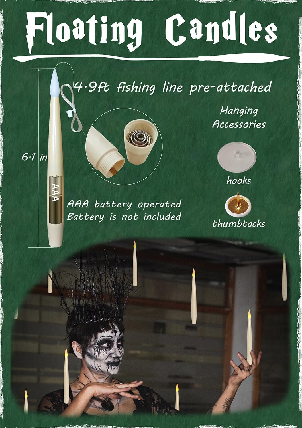 - Indoor decorations: Flickering candles are the perfect addition to your room. You can hang these candles on the ceiling or chandelier to create "floating" candles effect for a Movie Theme party. They also work great for dinner table, fireplace, bedroom, classroom, church service, birthday party, Halloween, Christmas decoration.