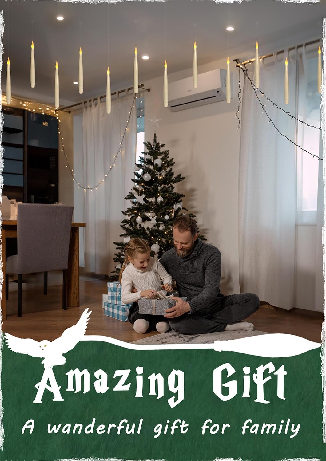 - Super easy to hang: 4.9ft long clear fishing line (barely visible) pre-attached on the tip of each candle, can hang down straight instead of being at an angle, and it's long enough to accommodate whatever your length needs are. You can hang candles onto the ceiling, window, wall with thumbtacks or stick hook, or just attach to the Christmas Tree.