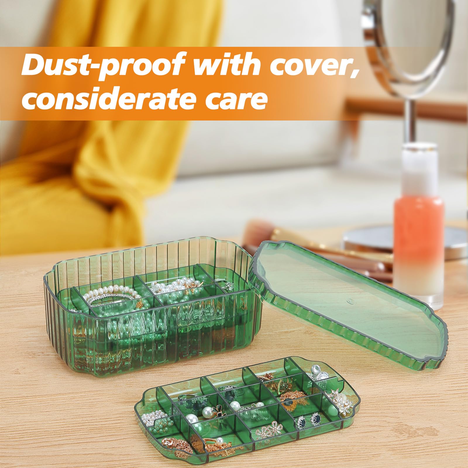 LETURE 3-Layer Jewelry Organizer Box for Earrings, Rings, Necklaces, Bracelets, Clear Plastic Bead Storage Containers for Crafts (Green)