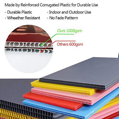 - 【Material】Made of reinfored corrugated plastic with a Wooden color and come with plastic stakes.you can slide into the holes and then stick into the ground. Held up very well outside in rain and wind. They didn't blow away, fall apart, or break easily