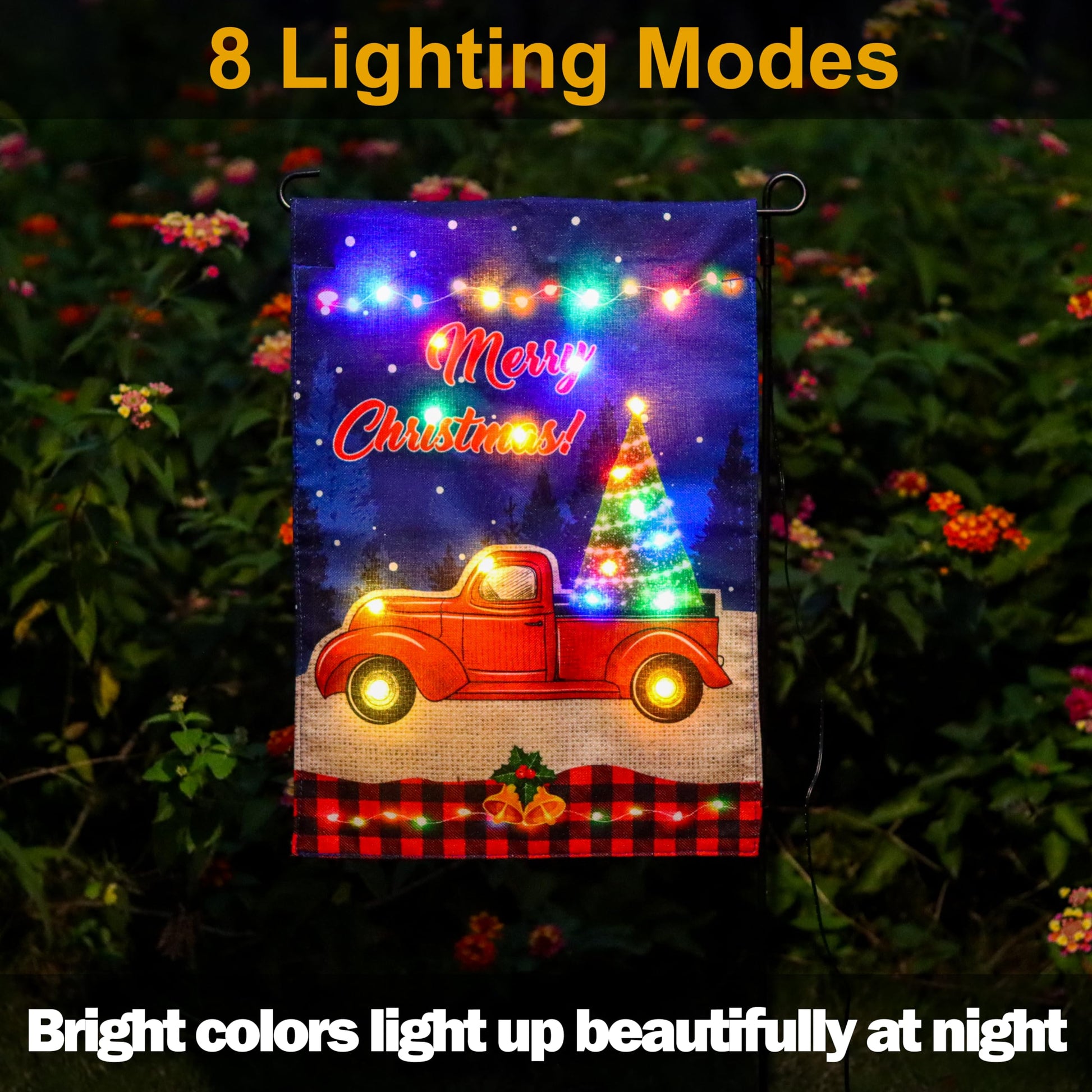 Lighted Christmas Garden Flag, LED Red Truck Flag Double Sided, Vertical Merry Christmas Flag for Outdoor Yard Garden Lawn Holiday Decoration(12x18 Inch)