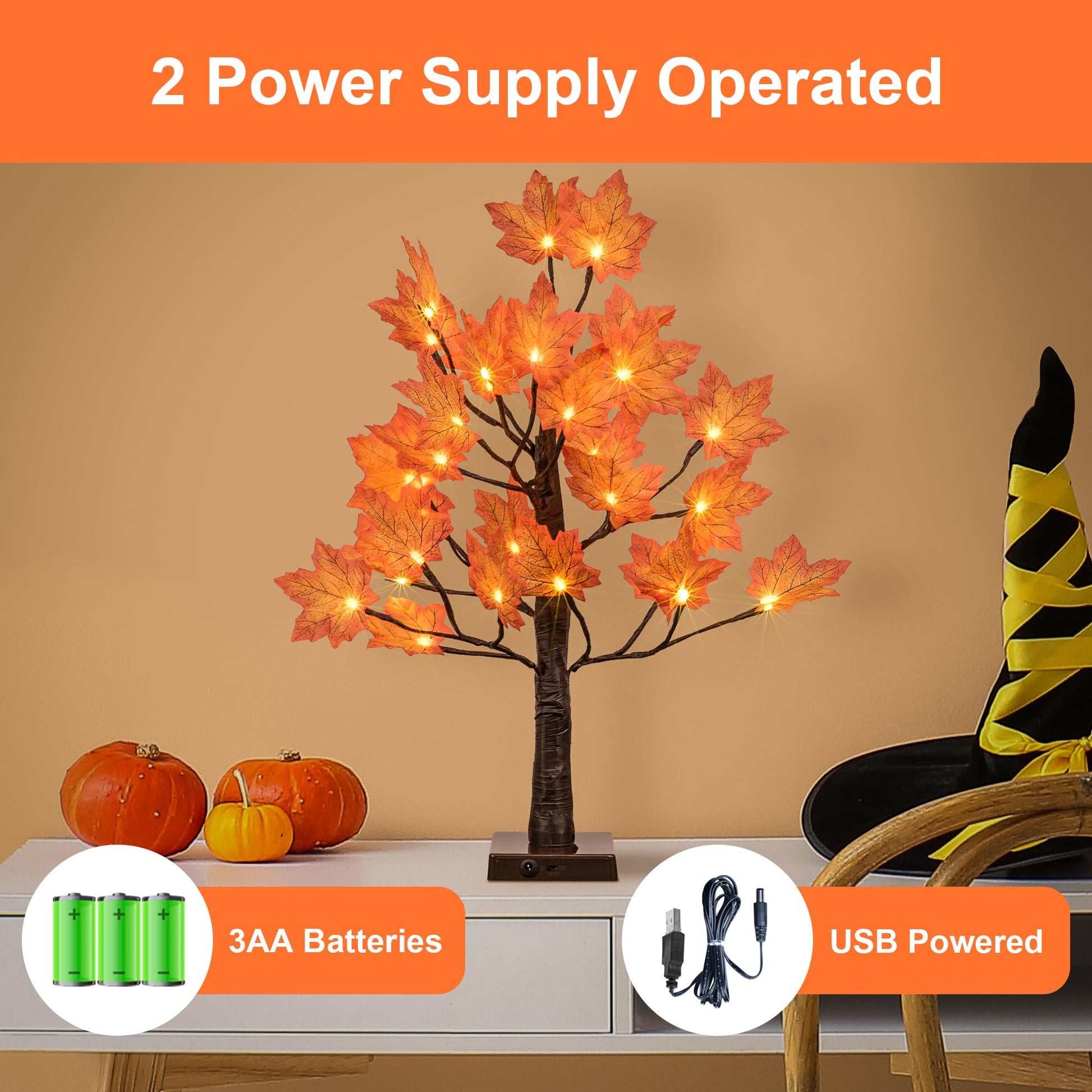 24IN Lighted Maple Tree for Fall Decorations, USB & Battery Operated with Timer Table Lights for Home Party Indoor Outdoor Thanksgiving Autumn Harvest Decor