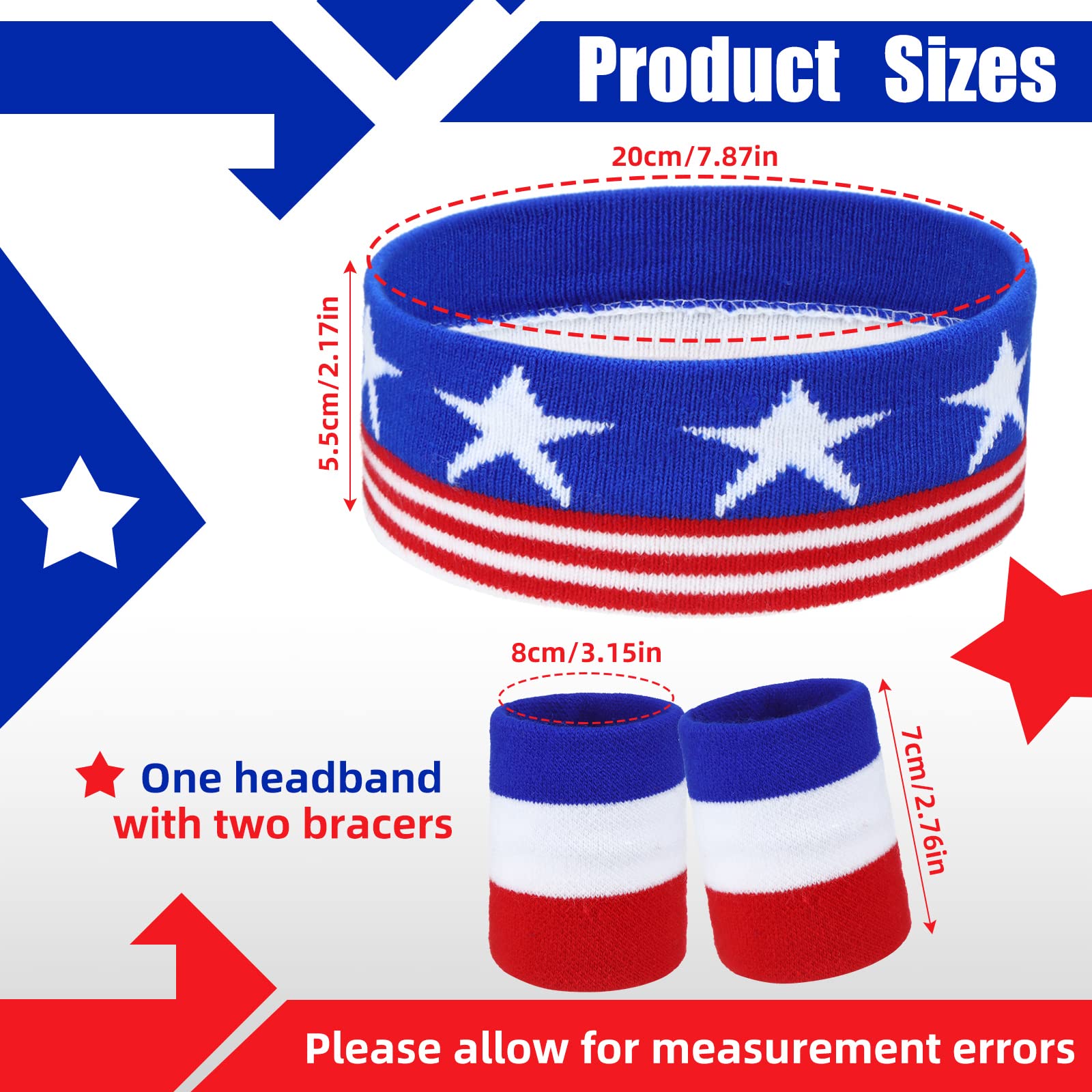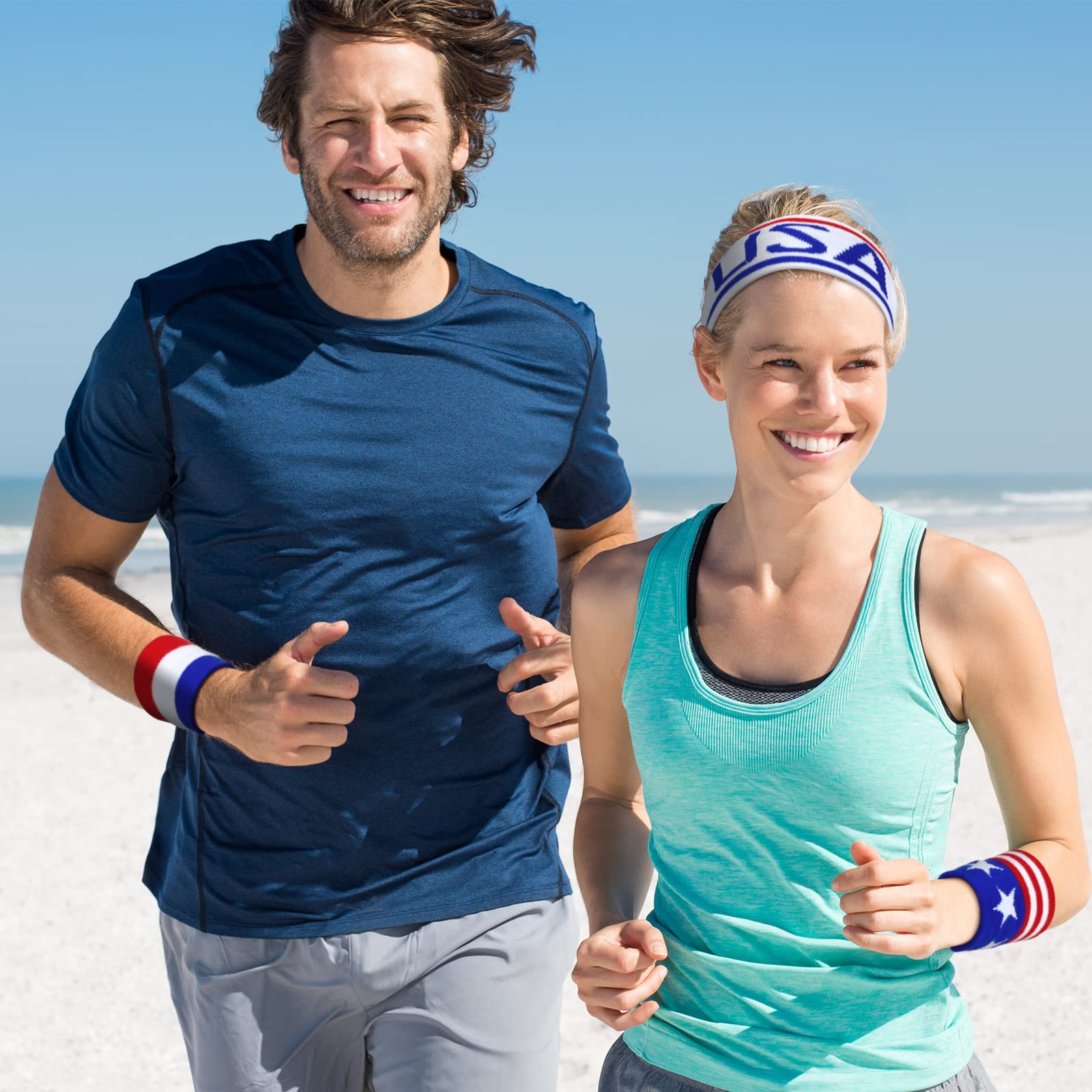 Liliful 6 Sets 4th of July American Flag Sports Headband and Wristband Set Patriotic Head Wraps Memorial Day Striped Sweatband USA Wristbands Accessories for Women Men Basketball Football Running