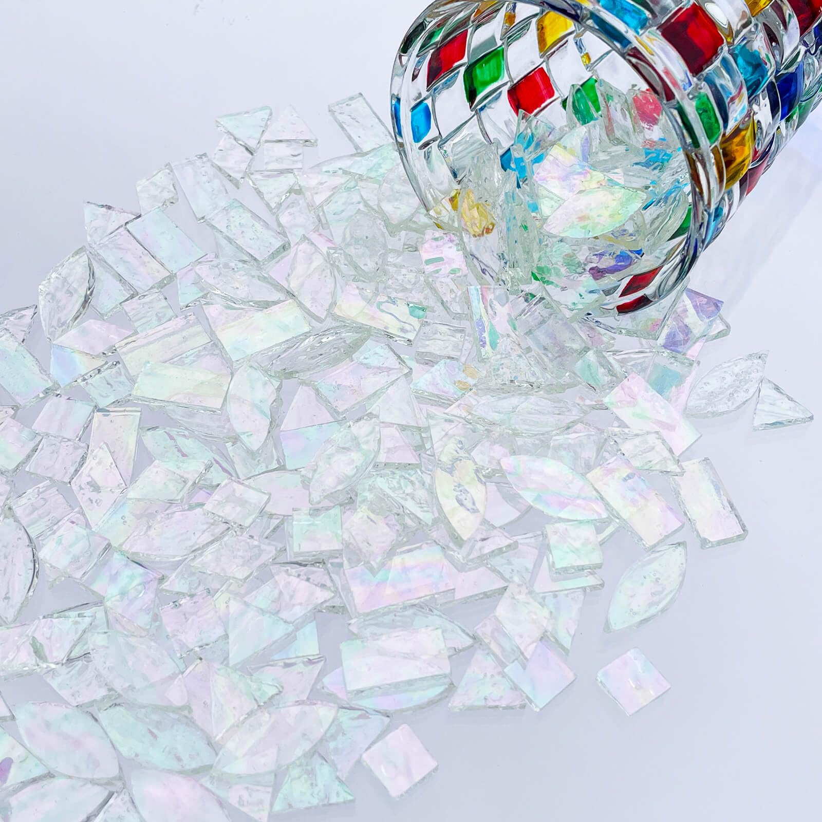 - Value Pack - This package has about 240 precut iridescent transparent glass pieces in 5 different shapes.