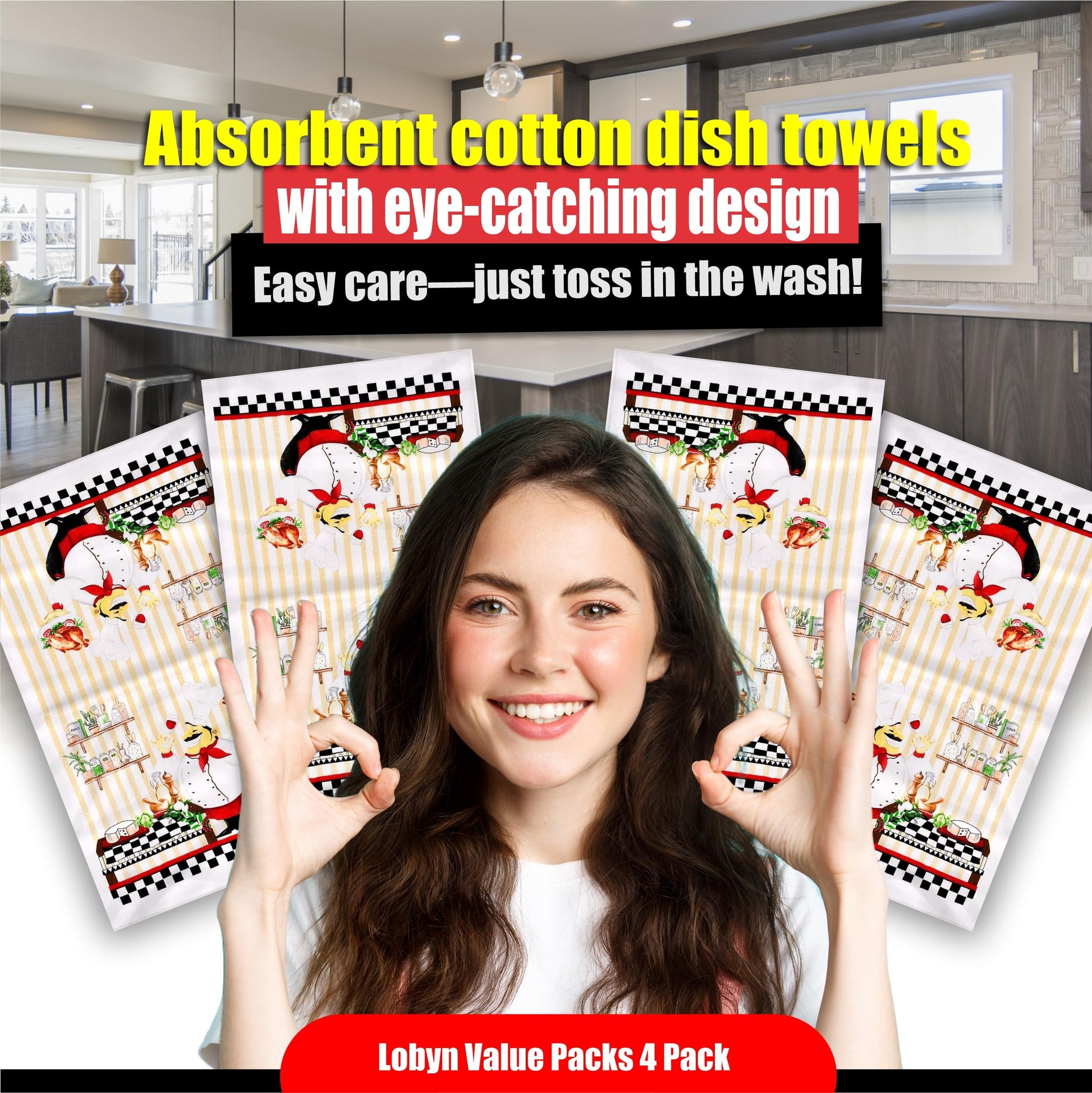 Lobyn 4-Pack Chef Dish Towels – Absorbent Lightweight Kitchen Towels 15x25, Decorative Cooking and Baking Kitchen Décor Towels