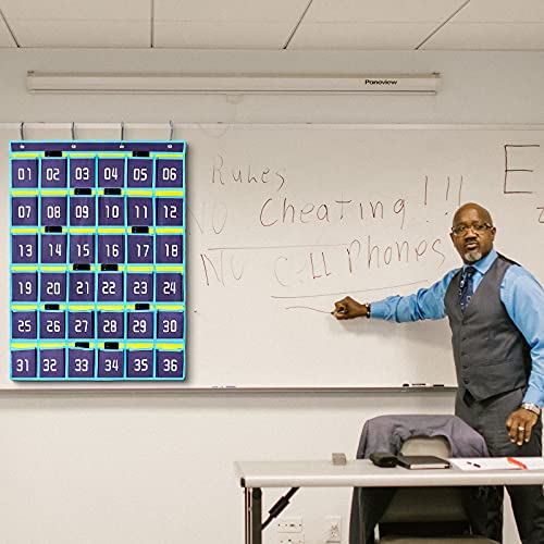 Loghot Numbered Classroom Sundries Closet Pocket Chart for Cell Phones Holder Wall Door Hanging Organizer (36 Pockets Blue)