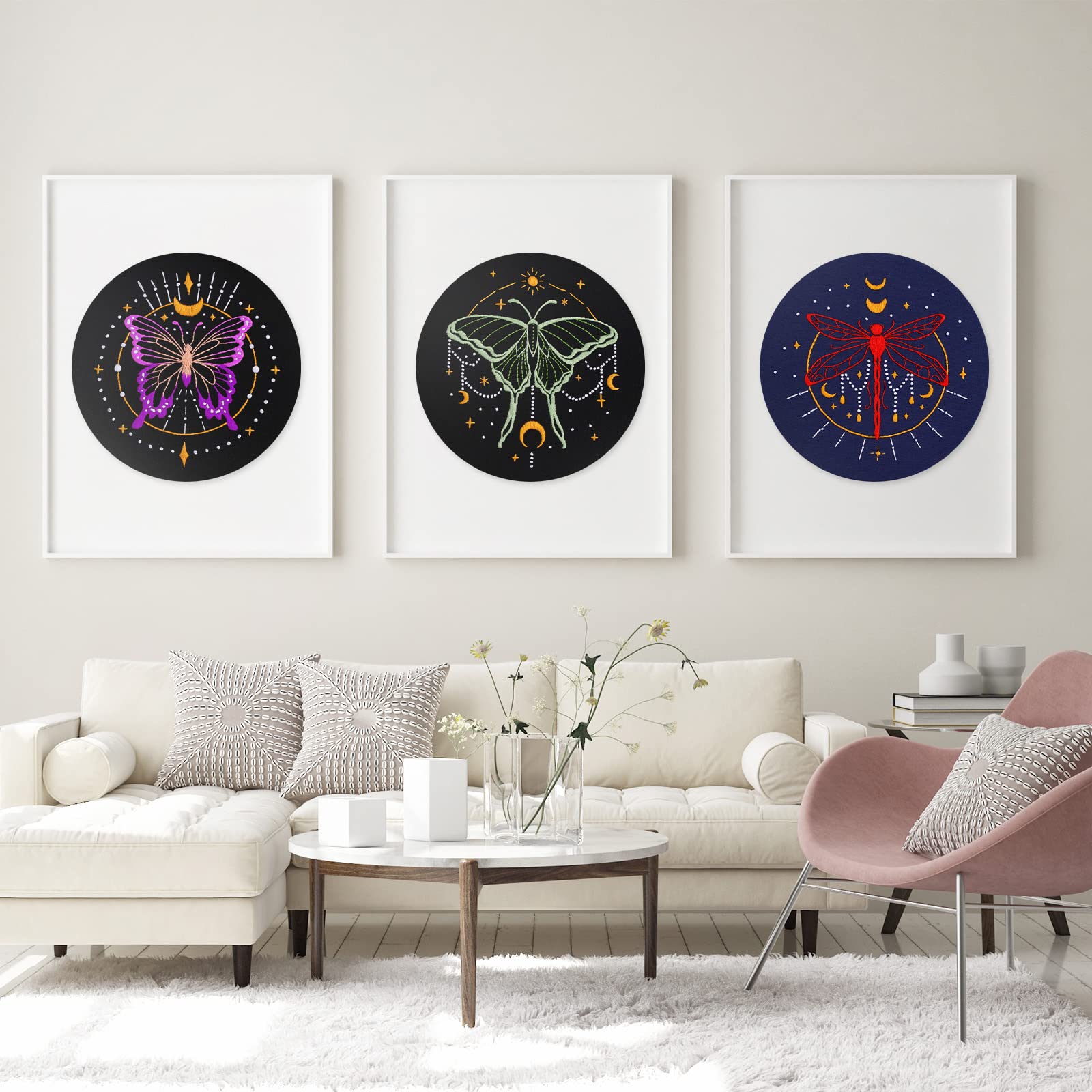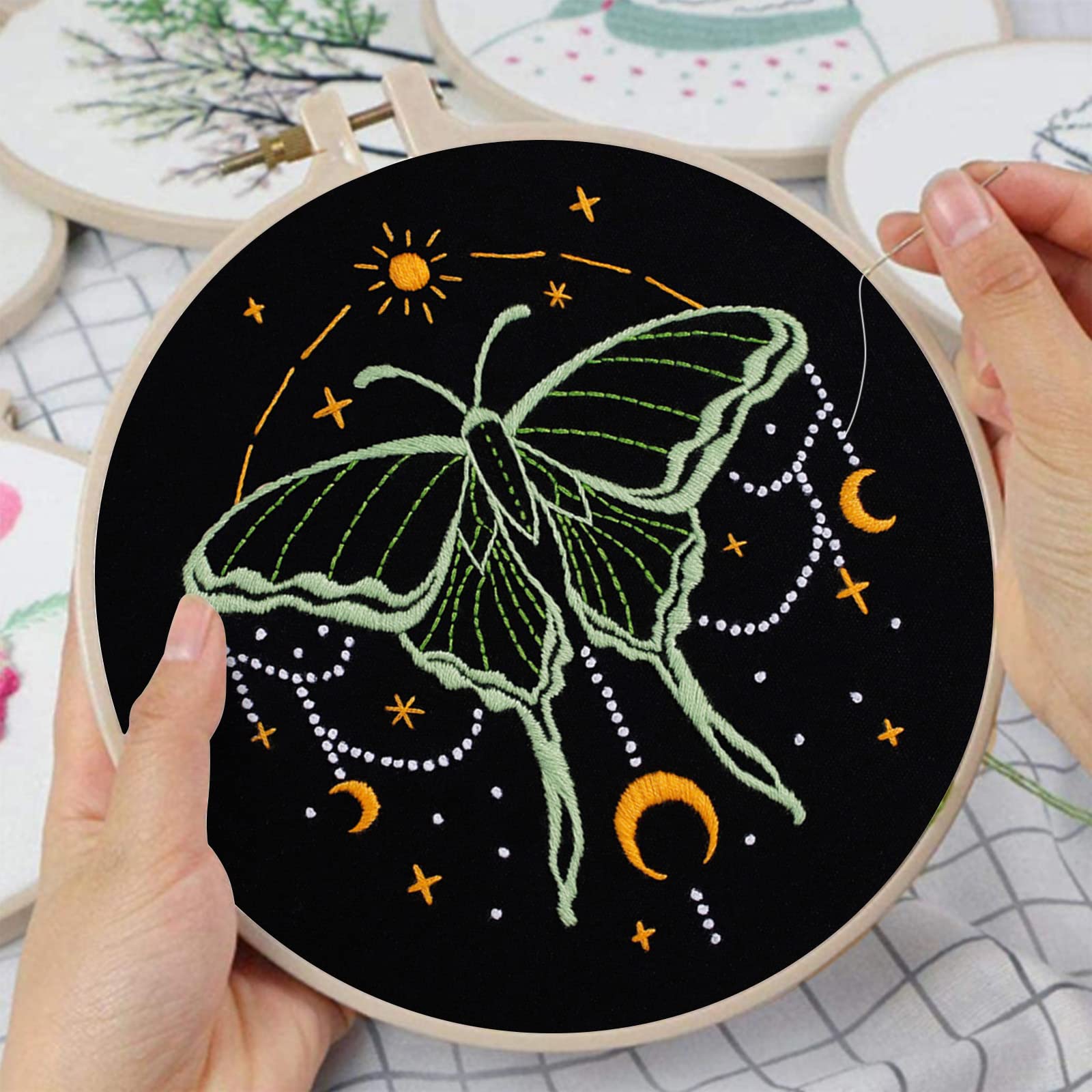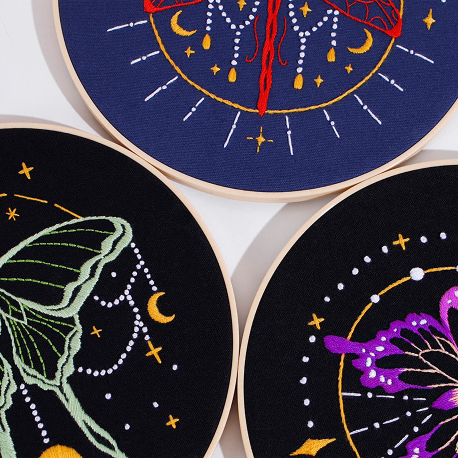 Louise Maelys 3 Set Tarot Embroidery Kits for Beginners with Moon Butterfly Dragonfly and Moth Pattern,Adults Starter Cross Stitch Kit DIY Needlepoint