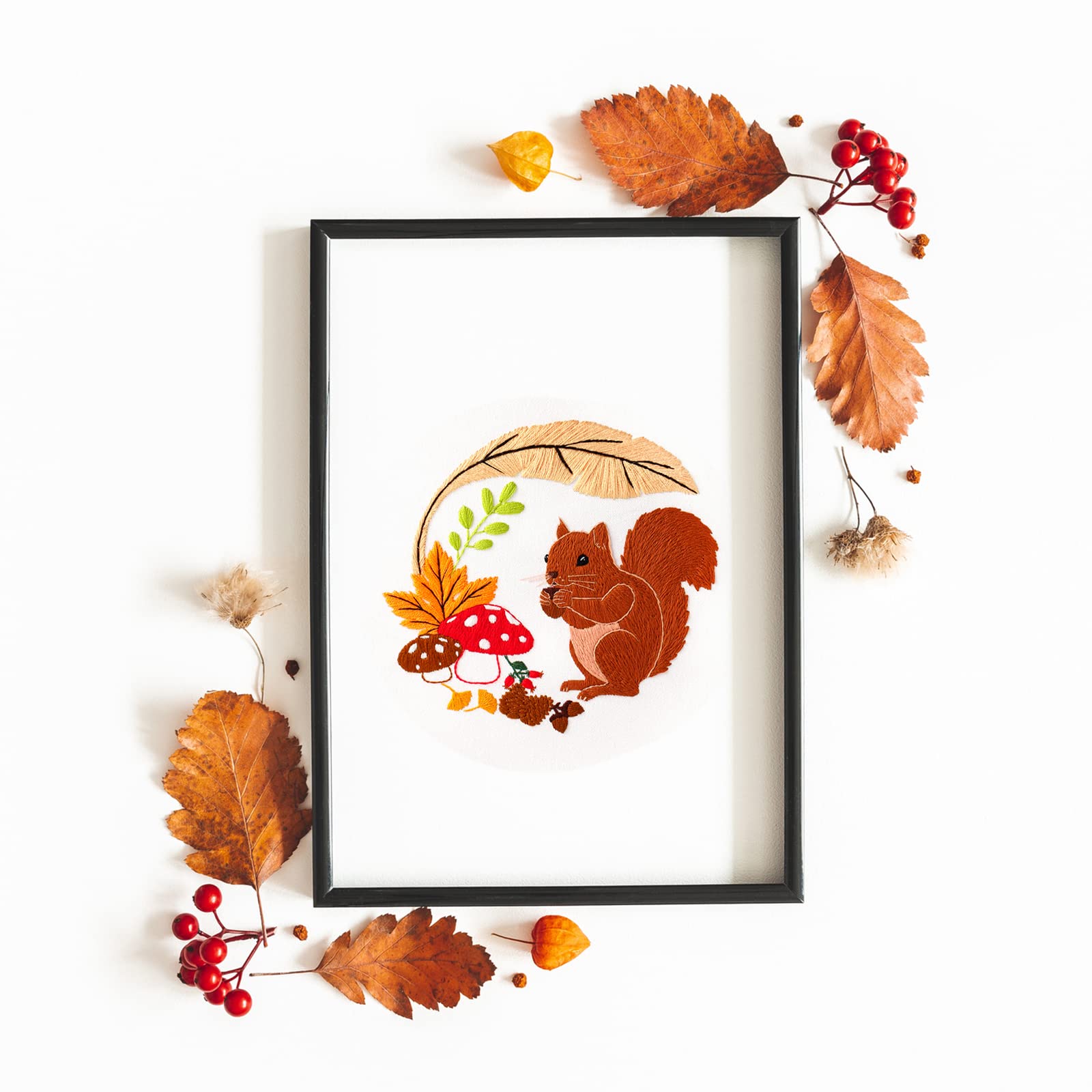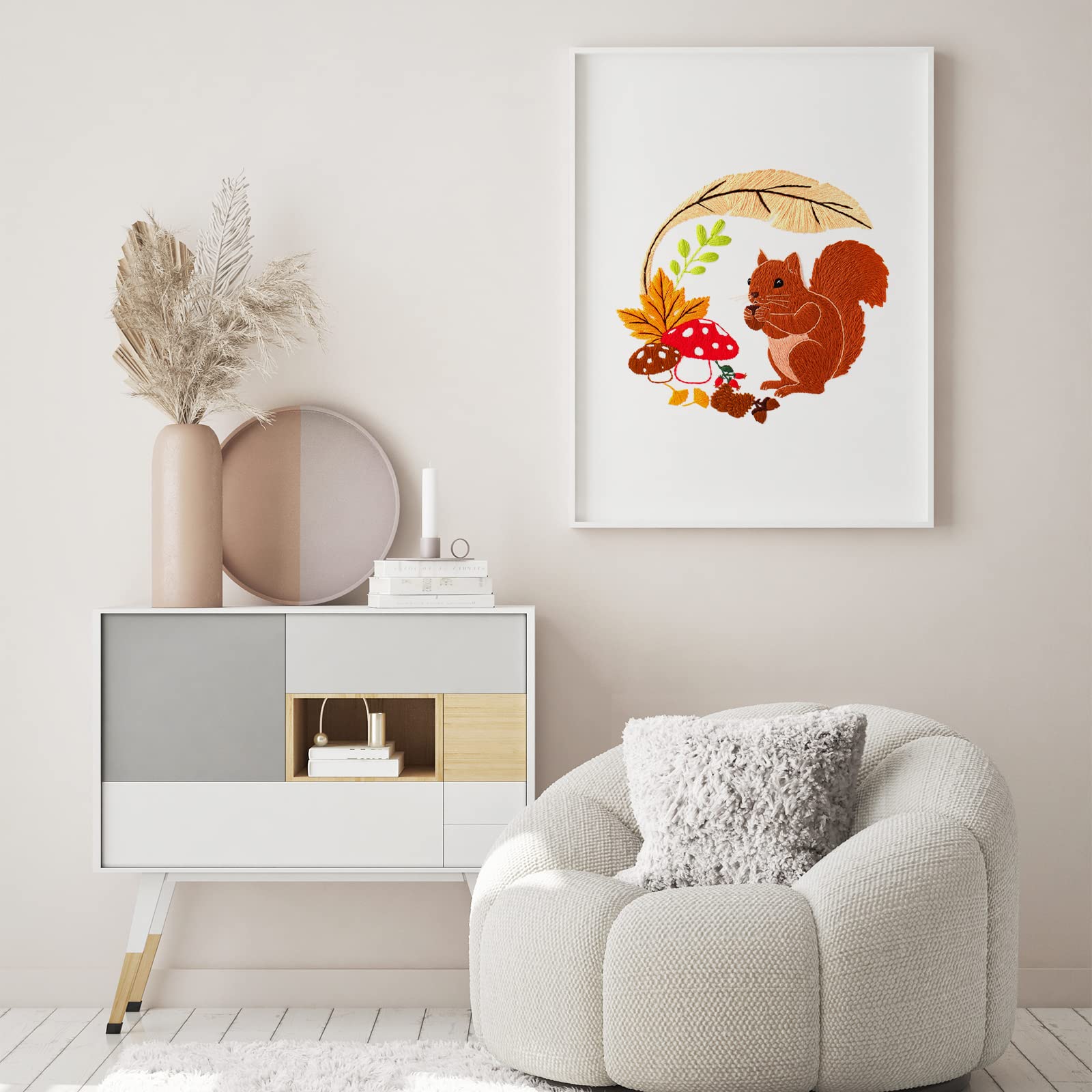 Louise Maelys Animal Embroidery Kits for Beginners with Autumn Squirrel Pattern,Adults Starter Cross Stitch Kit DIY Needlepoint