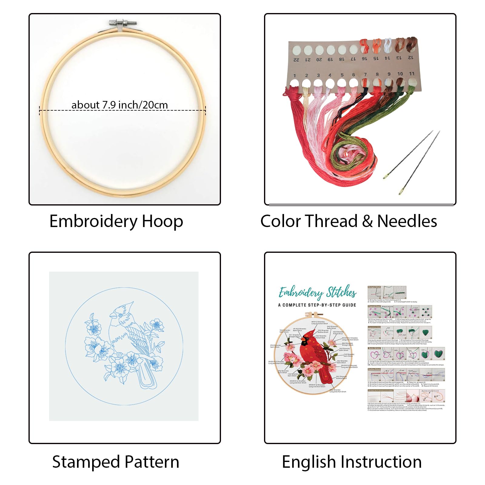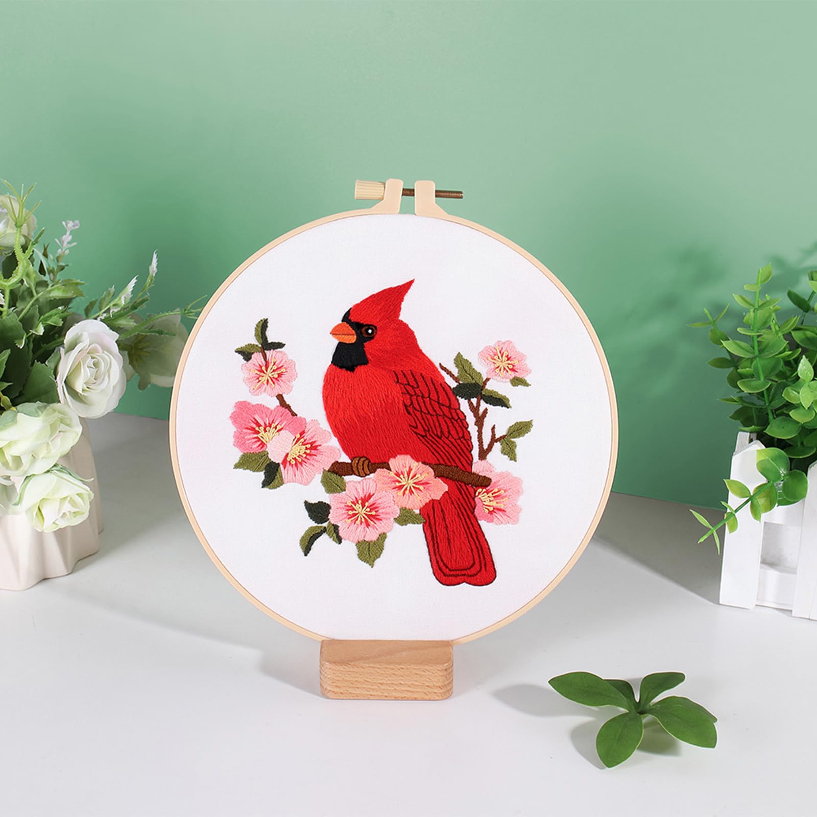 Louise Maelys Cardinal Embroidery Kits for Beginners with Bird Flower Pattern,Adults Starter Cross Stitch Kit DIY Needlepoint