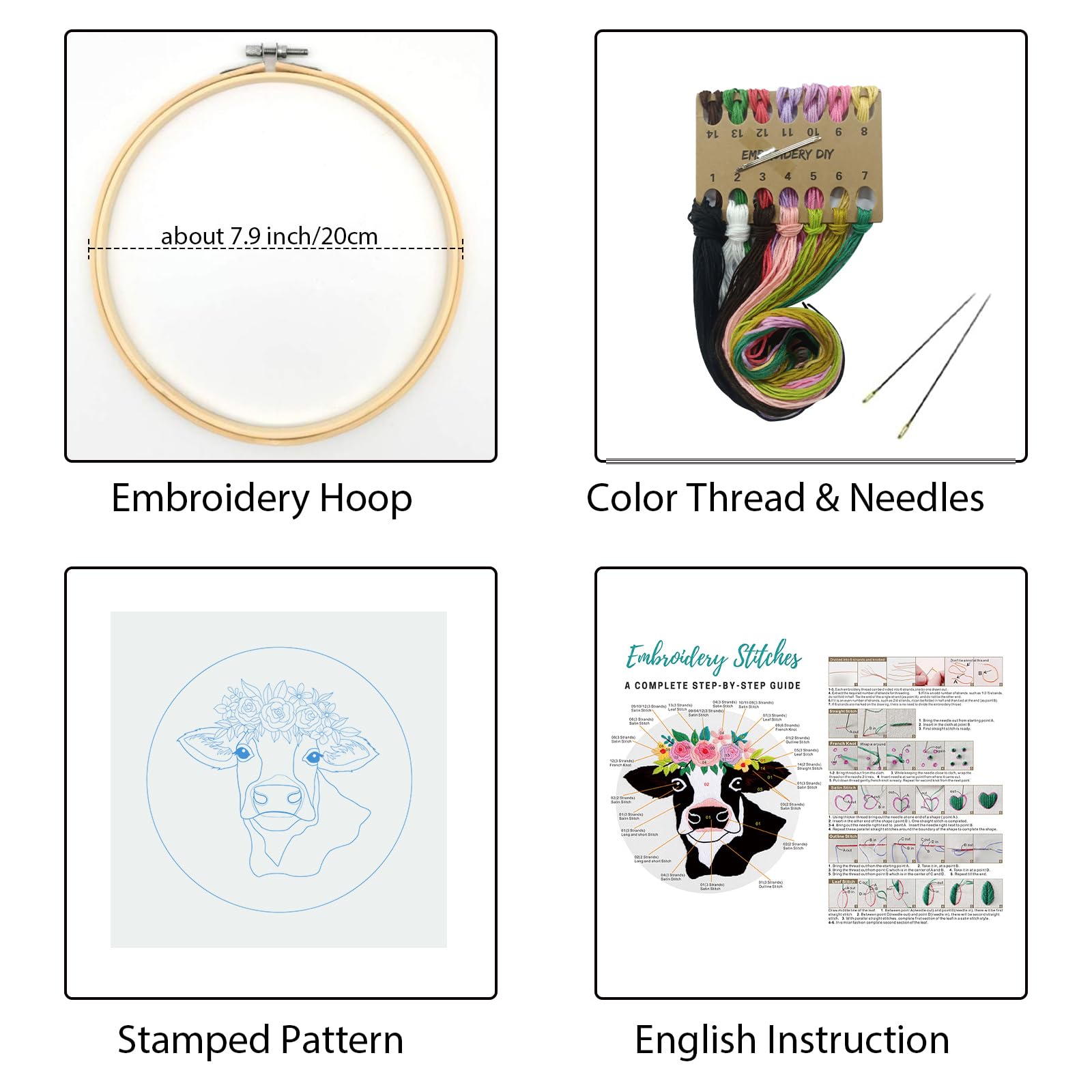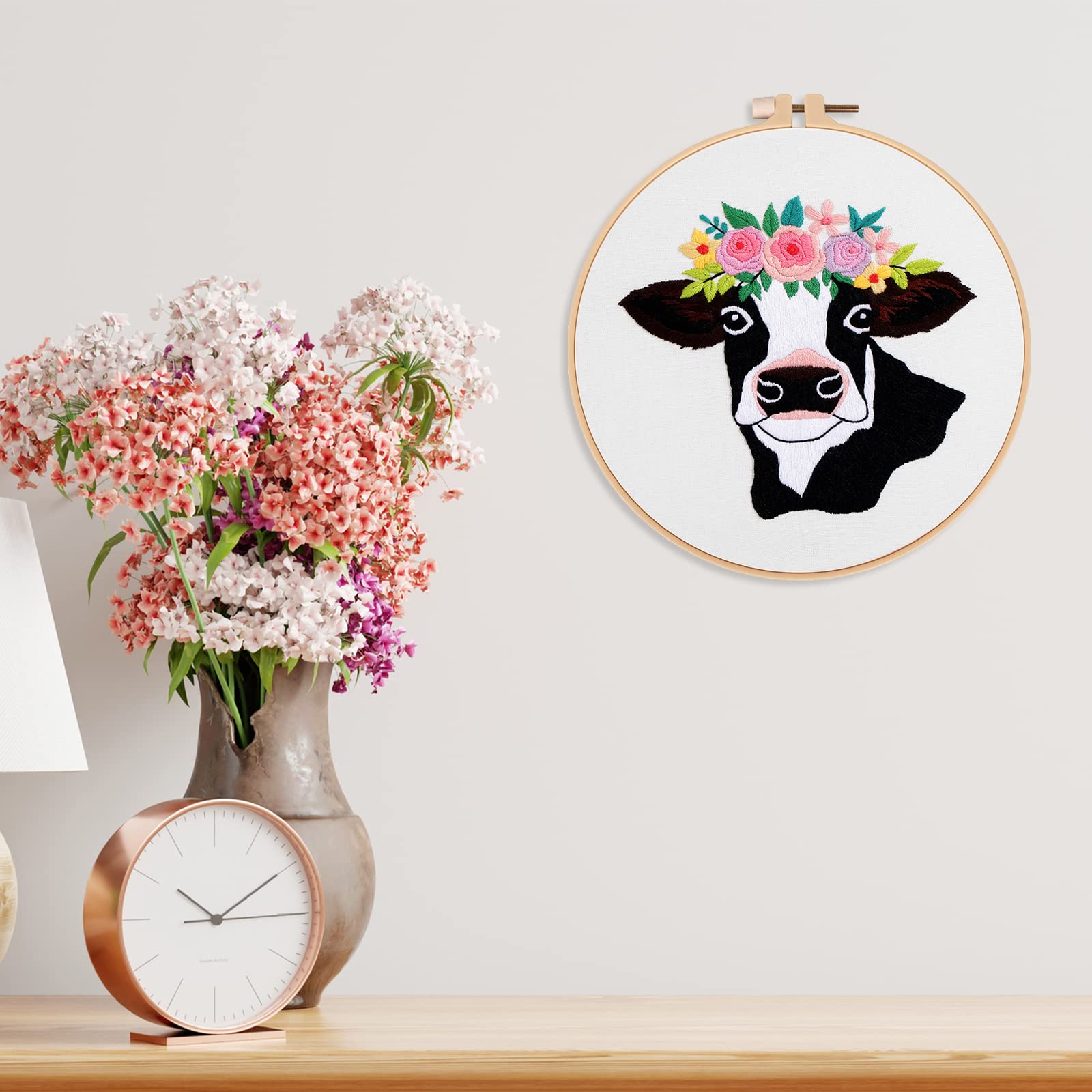 Louise Maelys Cow Beginners Embroidery Kits,Cross Stitch Starter kit for Adults with Embroidery Cloth Hoop Needles Instruction and Threads