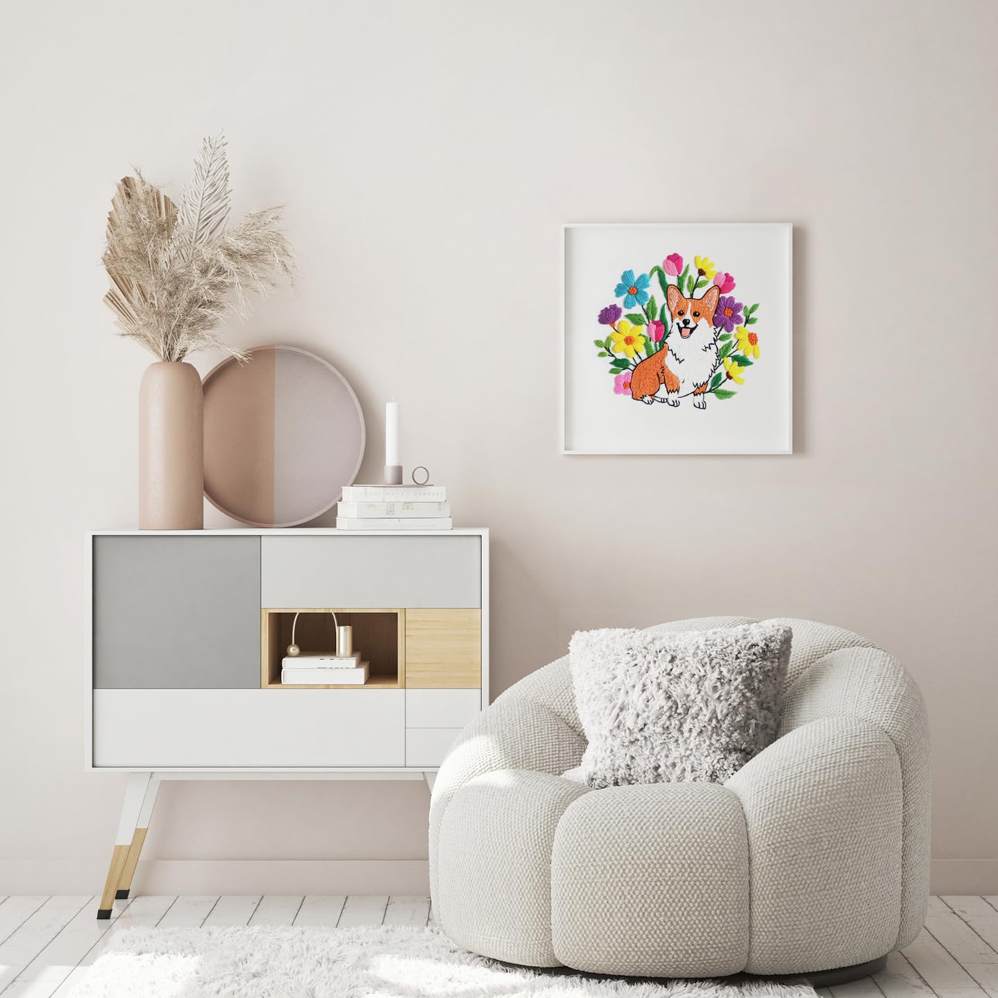 - Spring animal pattern:There are cute corgi and tulip floral pattern on the embroidery cloth,which will provide great help for Embroidery beginners