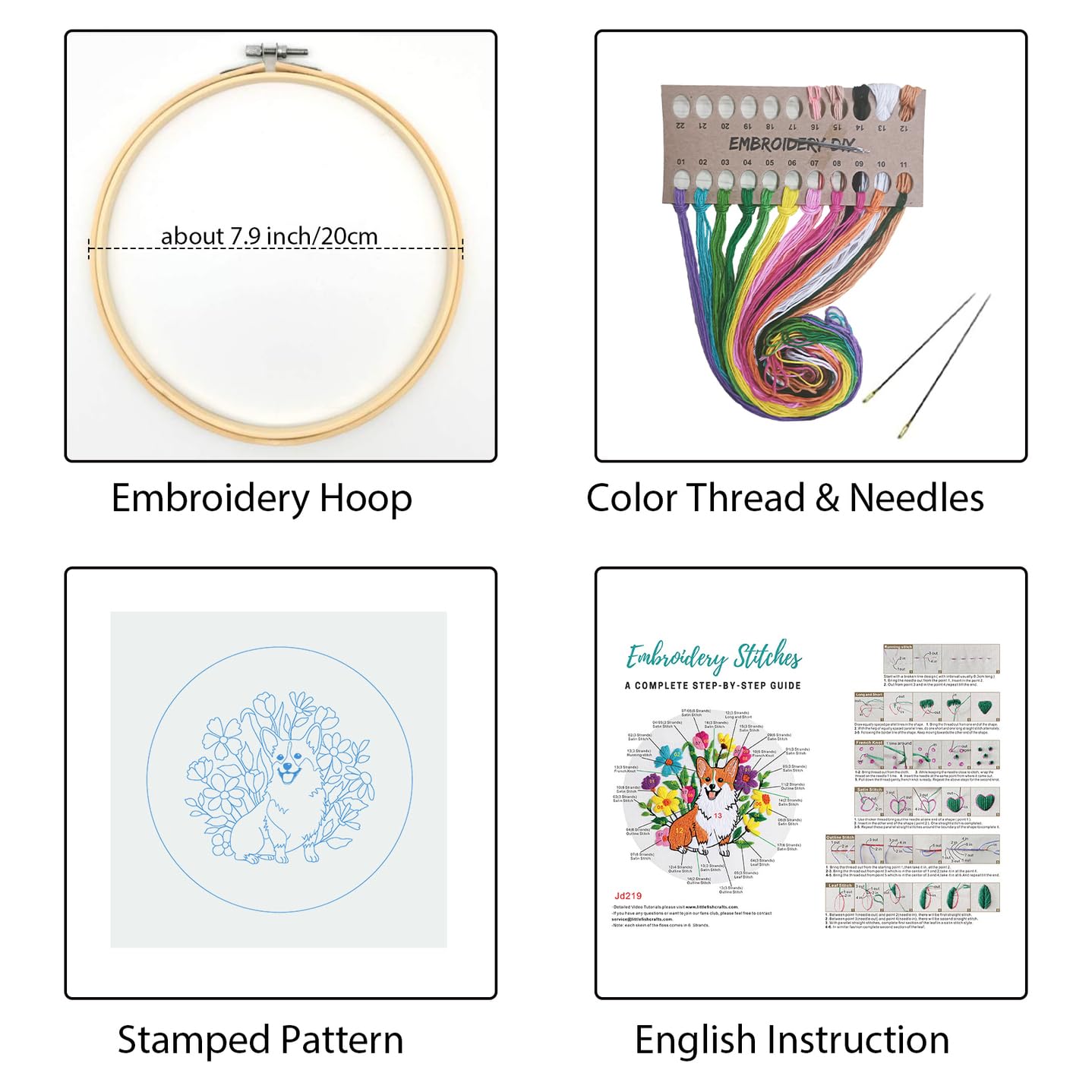 - Valuable hand embroidery kit:This cross stitch kit for Adults including embroidery fabric with pattern, plastic embroidery hoop(hoop size:7.8 inch),English instruction,embroidery needles and colored flosses