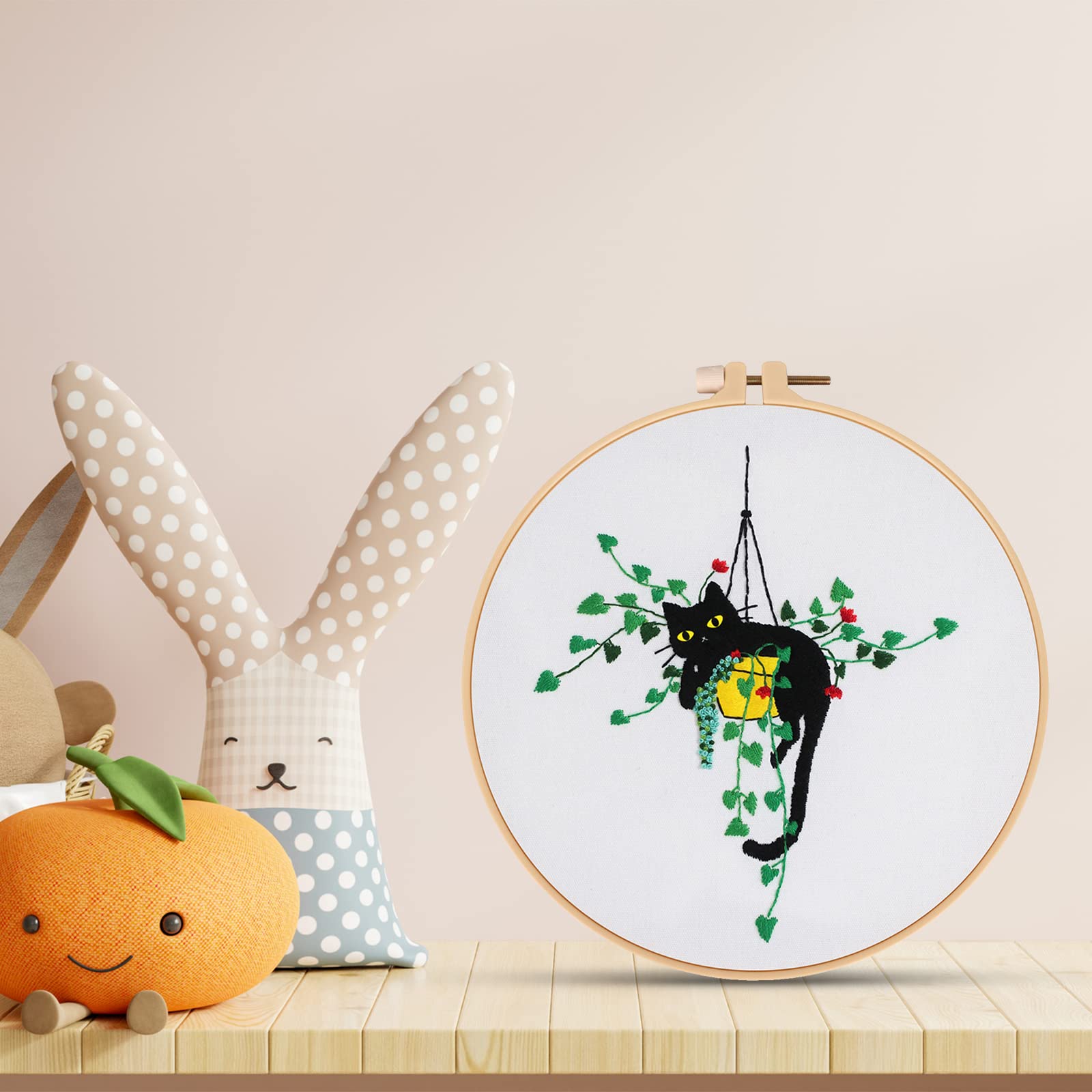 Louise Maelys Embroidery kit for Beginners,Cat Stamped Pattern Cross Stitch Kits for Adult Including Cloth,Hoop,Color Threads,Needles and Instruction