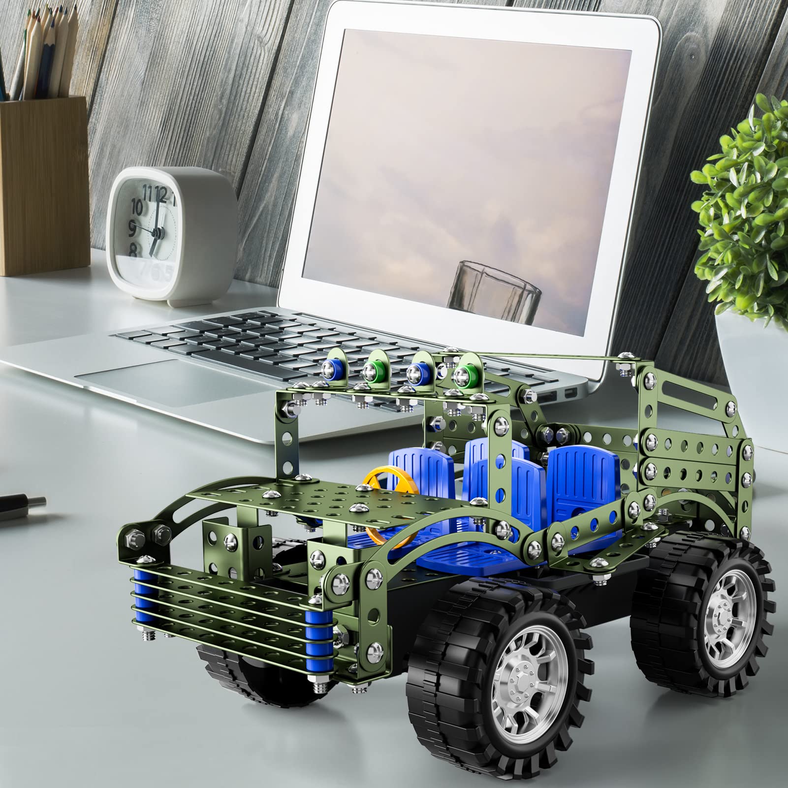 - 【Valuable Collection & Souvenir】 The model truck is colored in army green, with 4 seats, 4 moveable wheels and a steering wheel, it looks just like the real truck.