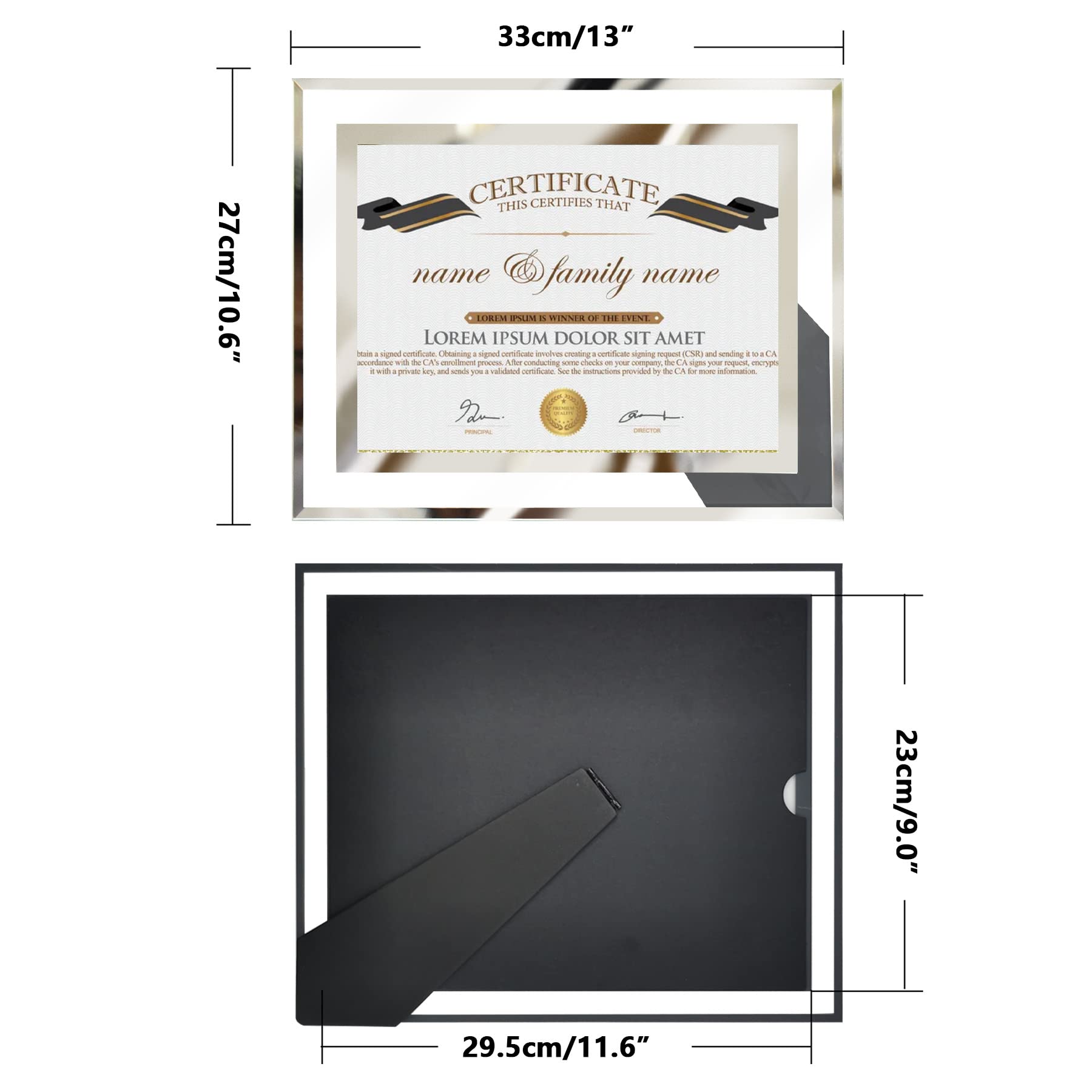 - Easy to Use: Glass certificate frame 8.5x11 has a slot in the back to slide the certificate into, the opening is easy to insert the picture/certificate. The stand works for vertical or horizontal use.