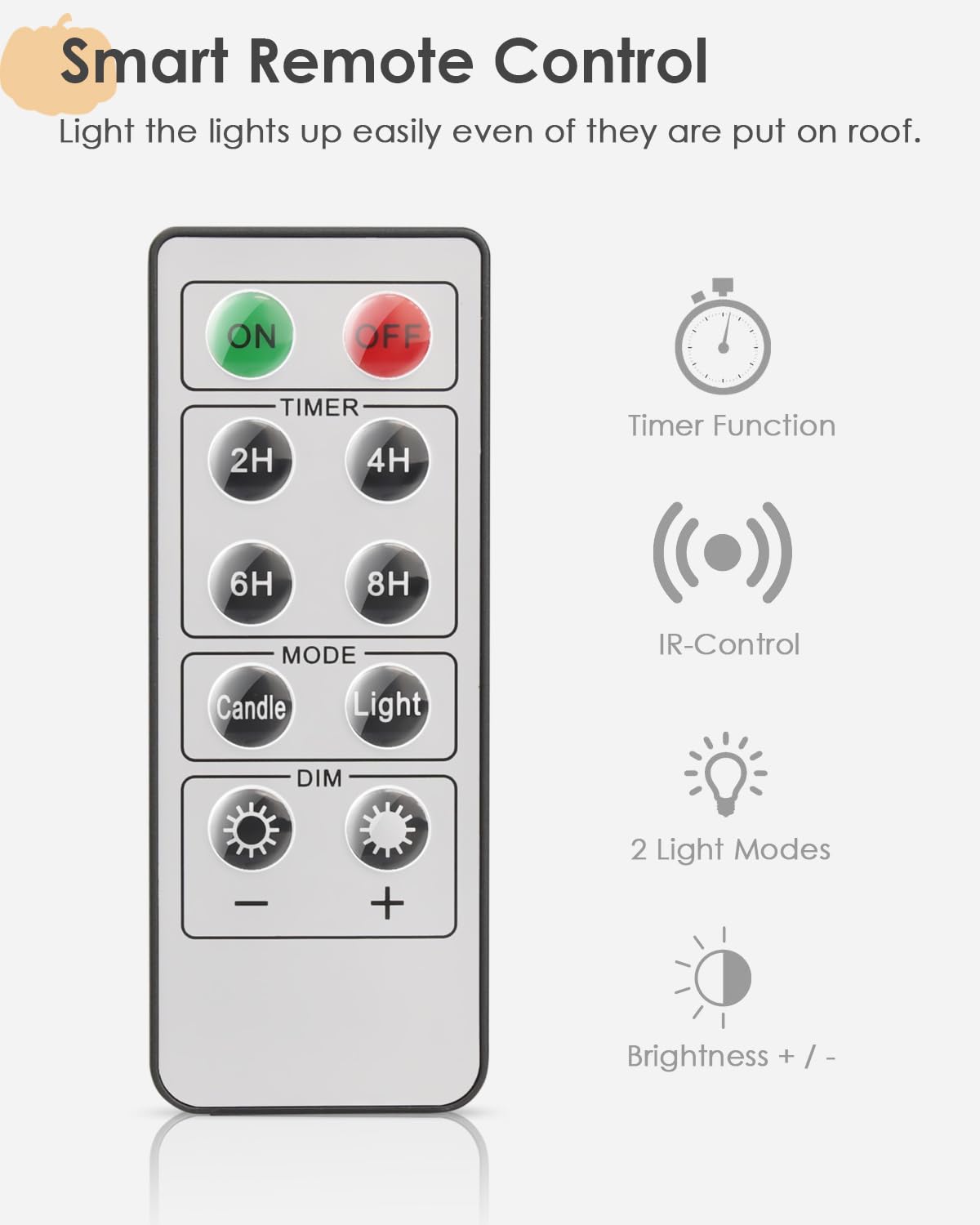 - Lighting Modes with Remote Control: Candle Mode: the lights will flicker looks like candles; Light Mode: the lights will keep steady on. And the dim of the lights can be adjusted via remote.