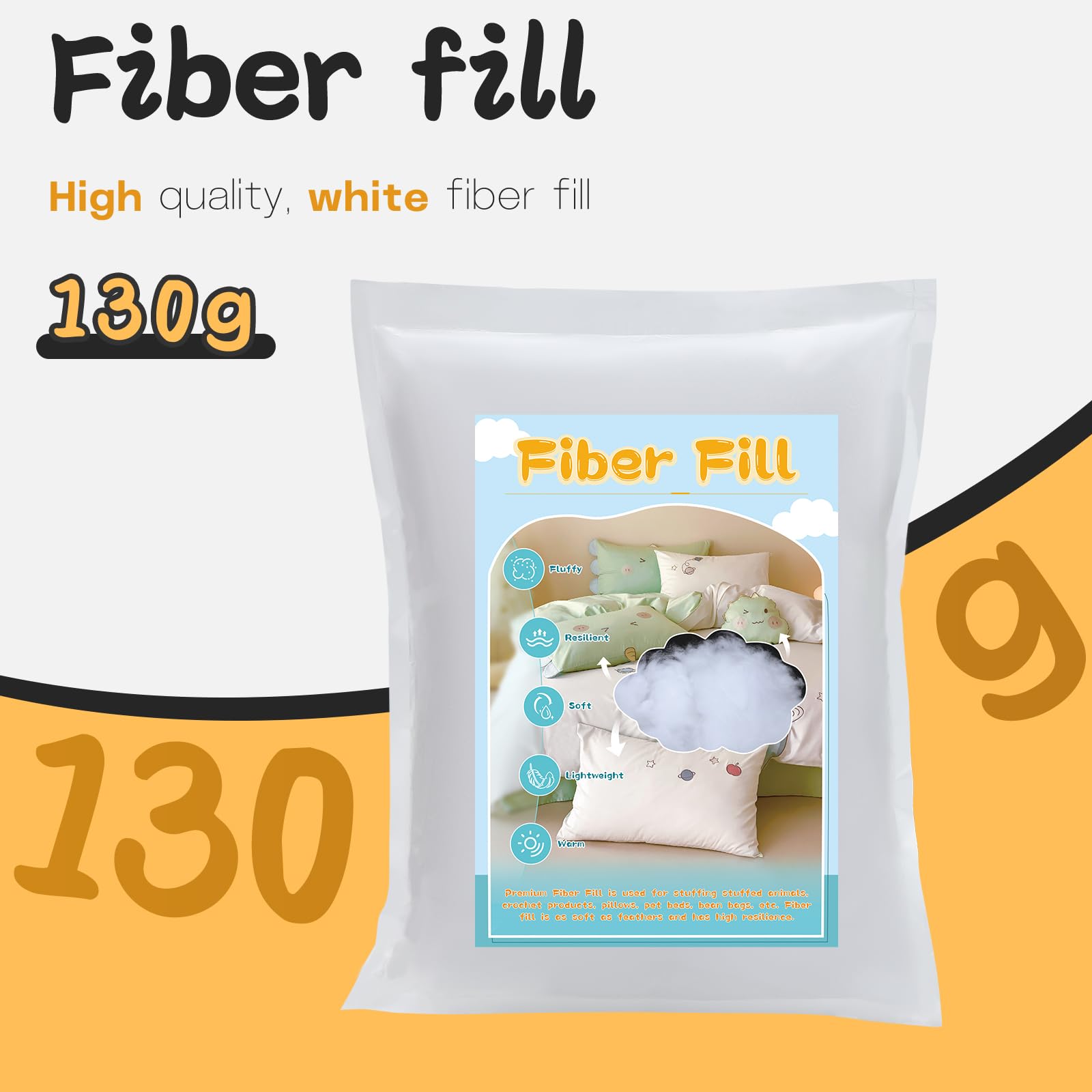 - Essential Information: Fiberfill stuffing of 130g (4.59oz) with vacuum compression packaging which is not easy to humidified.