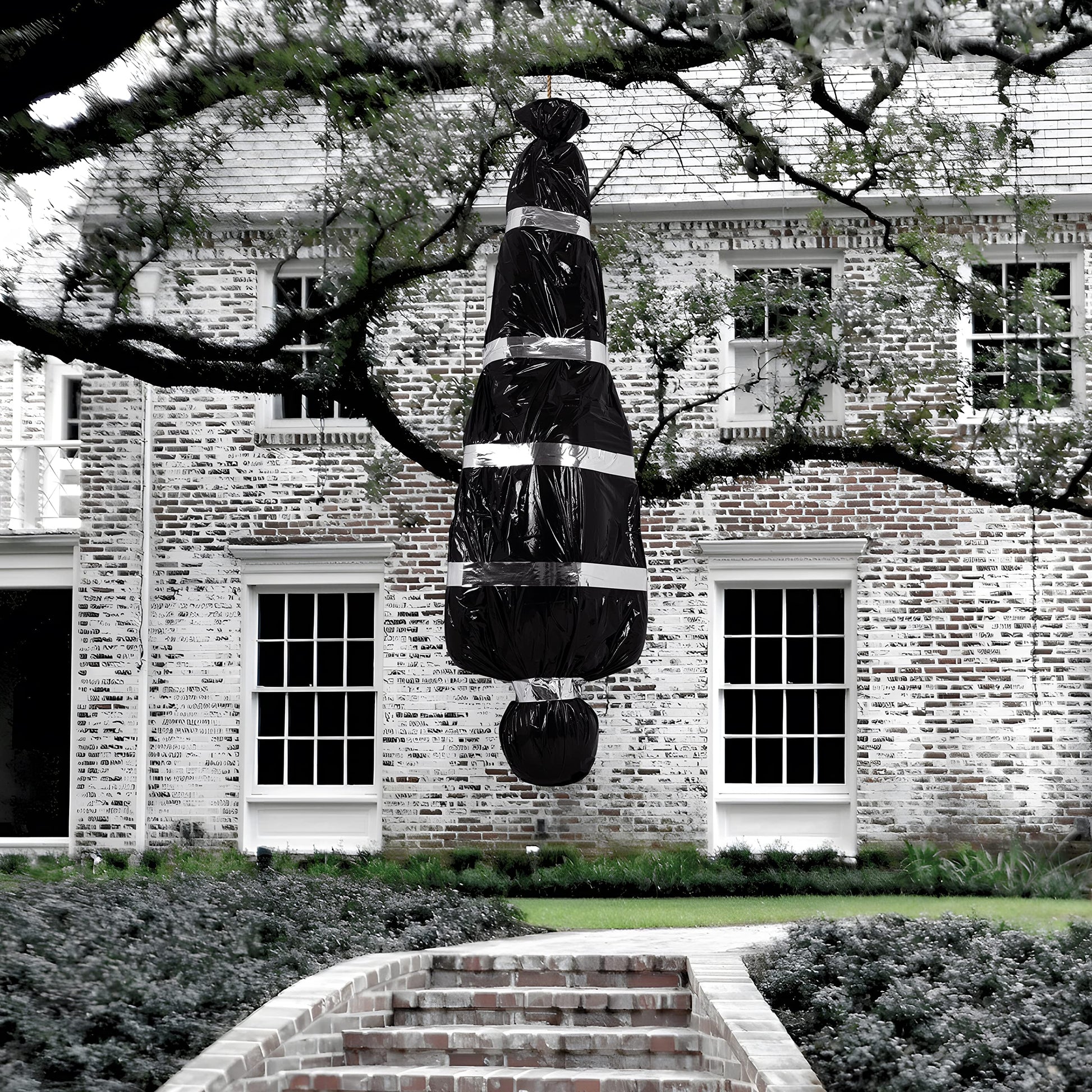 - Material & Sizes - Halloween victim prop and black bag are made of plastic. The tape is made of aluminized film. Assembled Halloween props measure approx 4.92ft will add more surprise to your guest.