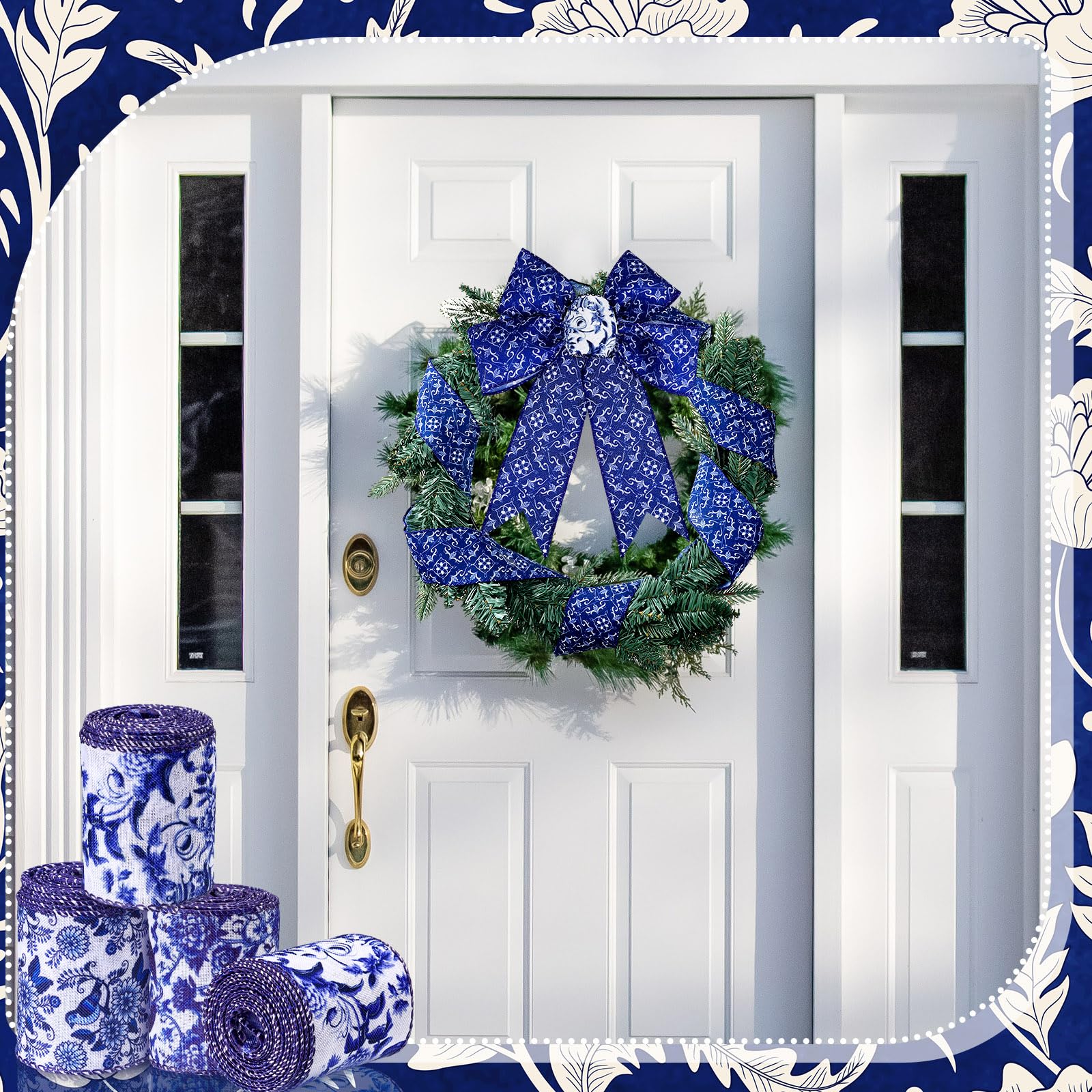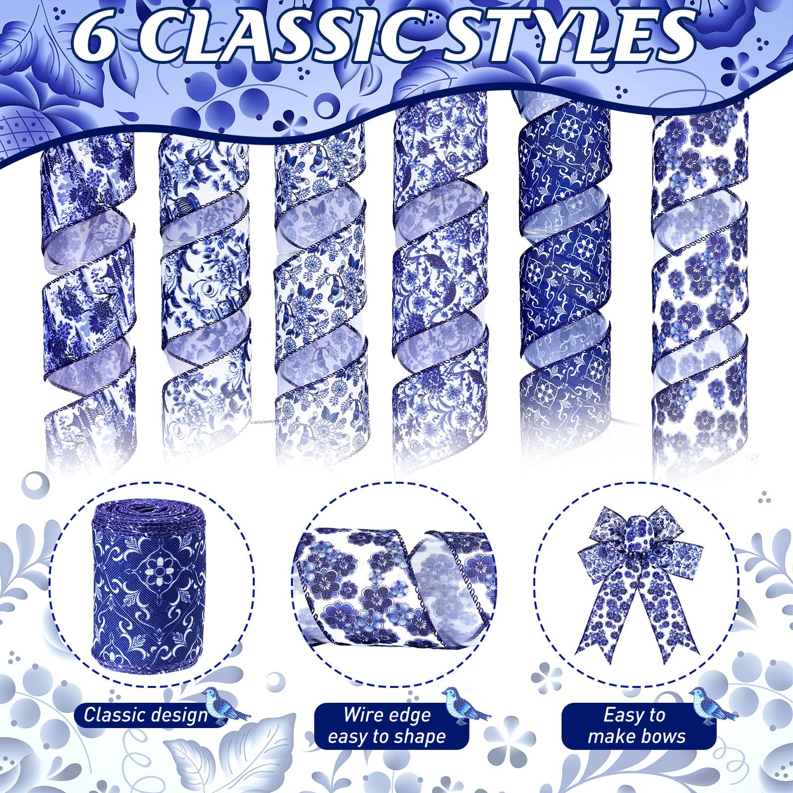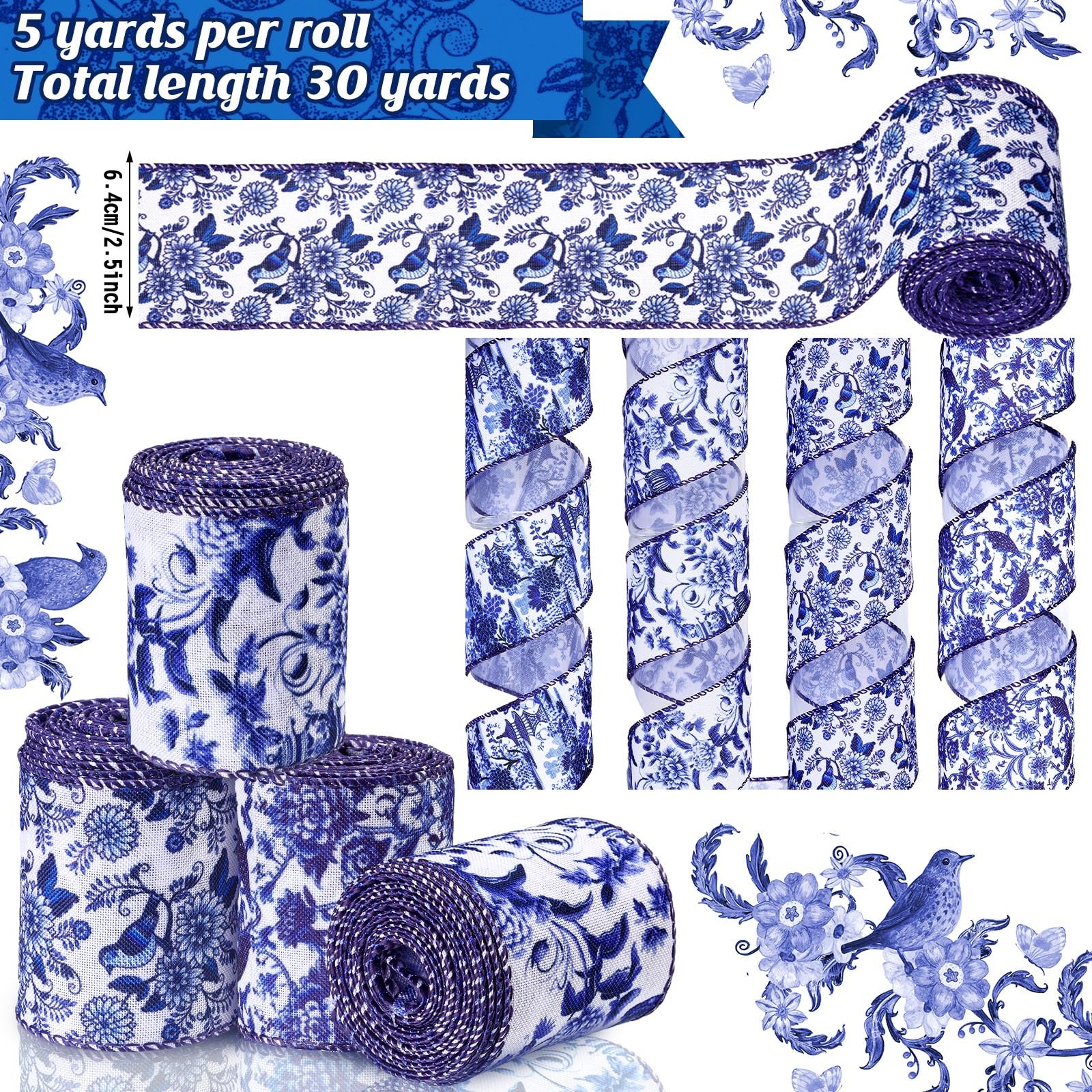 - Beautiful Design: adorn your crafts or decoration with wired ribbon for wreaths inspired by the blue and white porcelain series; Each ribbon incorporates an elegant pattern of flowers and butterflies, symbols of traditional and classic Chinese aesthetics; This lends a touch of charm and elegance, making every occasion memorable