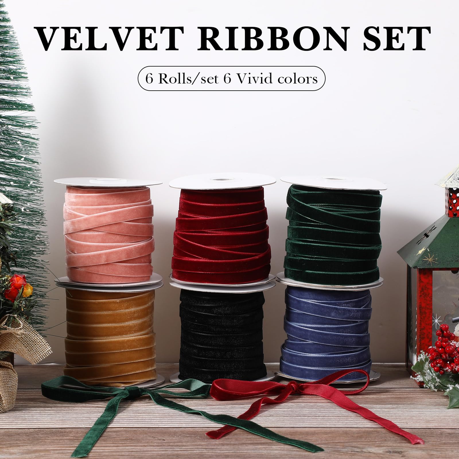 - Package Included: you will receive 6 rolls of single face thin velvet ribbons, including 6 different colors of black, red, blue, green, pink, and khaki; This package ensures you have an adequate supply for your crafting, decorating, and gifting needs