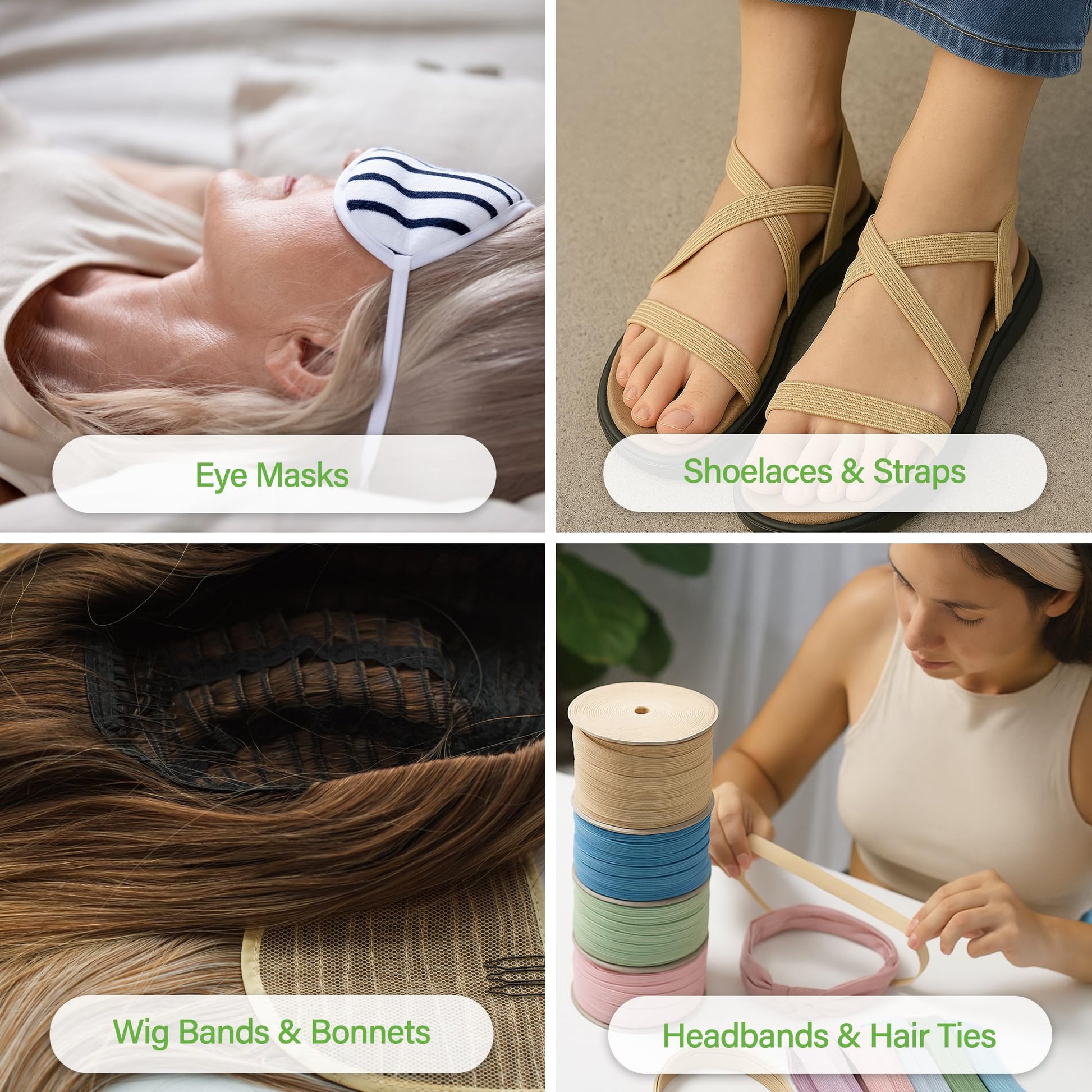 - Versatile DIY Elastic Bands: The craft elastic band is great fabric elastic bands for wigs, elastic hair ties, headband, bonnet, ponytail holders, hats, loop ties, elastic shoelaces, or face masks elastic straps and drawstring elastic band for bags and pouches.