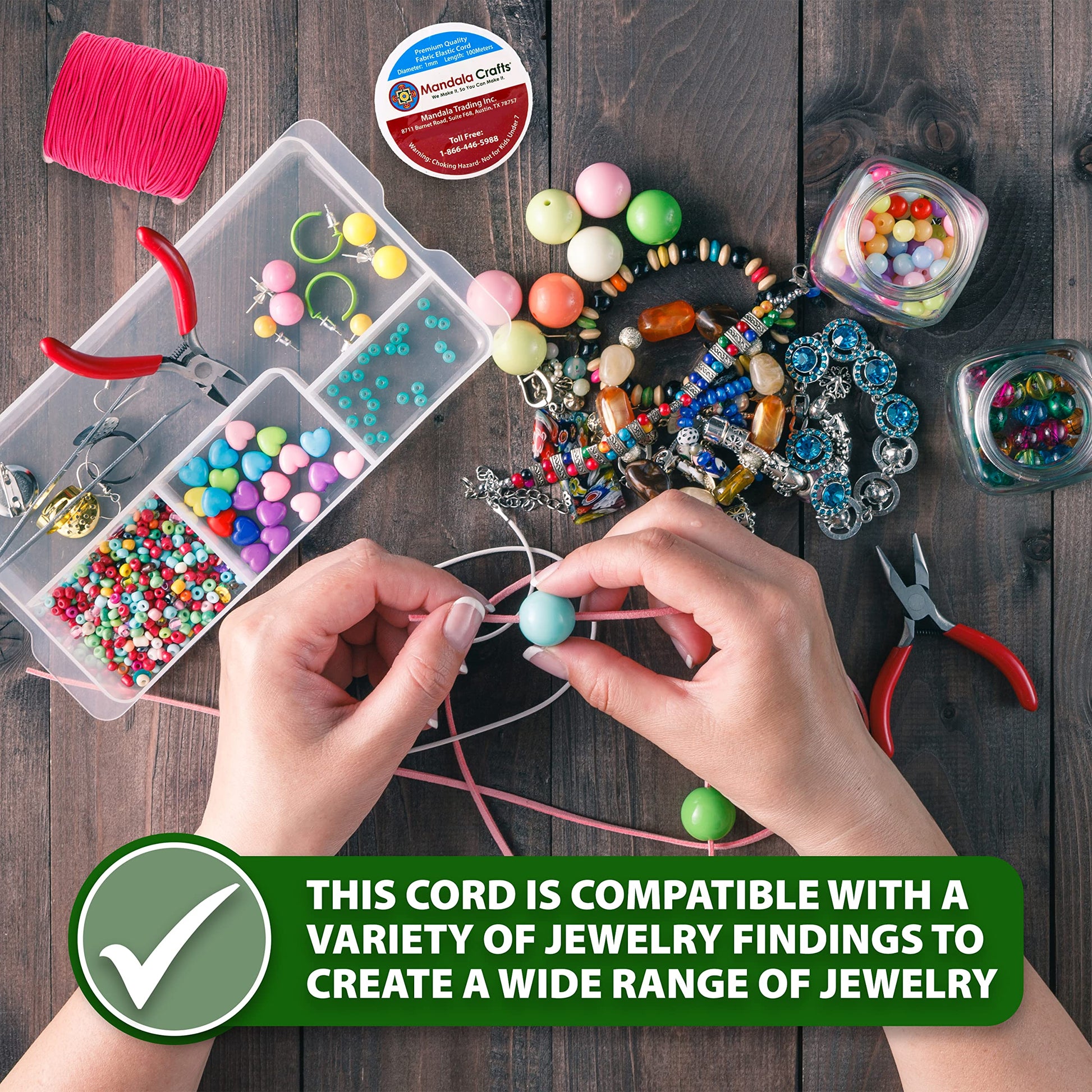 - 2mm Elastic Cords for Bracelets & Necklace Strings: The non irritating stretchy string for bracelets & hilo para hacer pulseras, anklets, kandi & friendship bracelets, & waist beads pairs nicely with charms, heishi clay beads & pony beads, and jewelry findings.