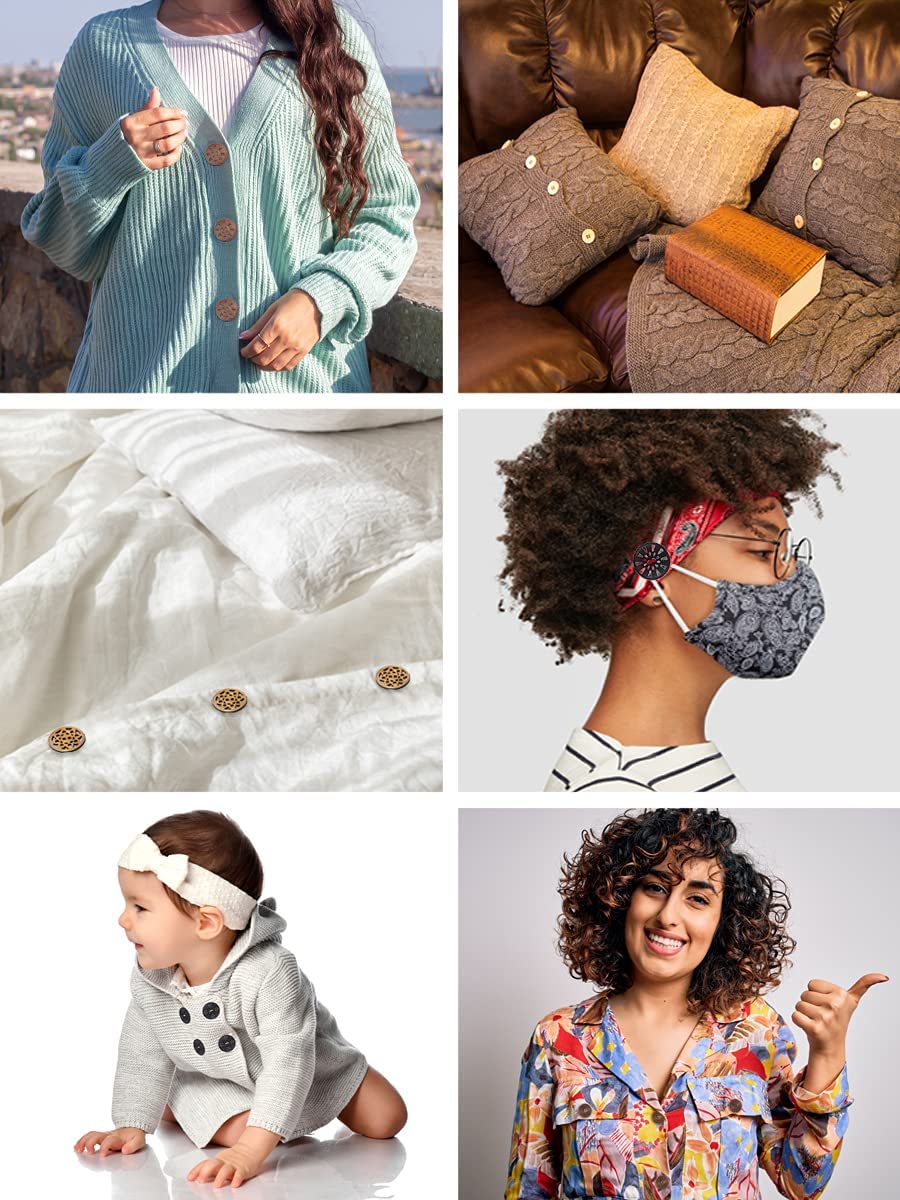 - Wood button assortment for shirts, coats, jackets sweaters, purses, hats, bags and mask ear savers; Large wood buttons for mittens, jeans, gloves, beanies and throw blankets