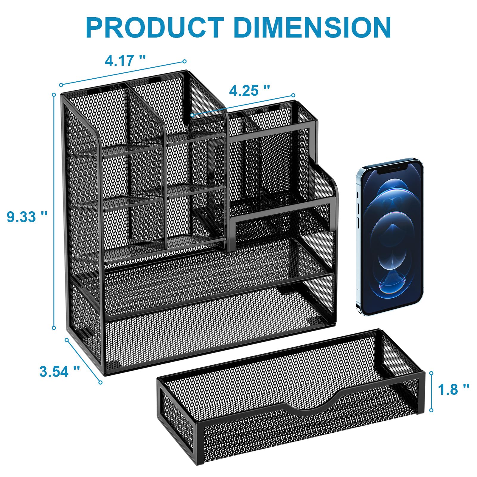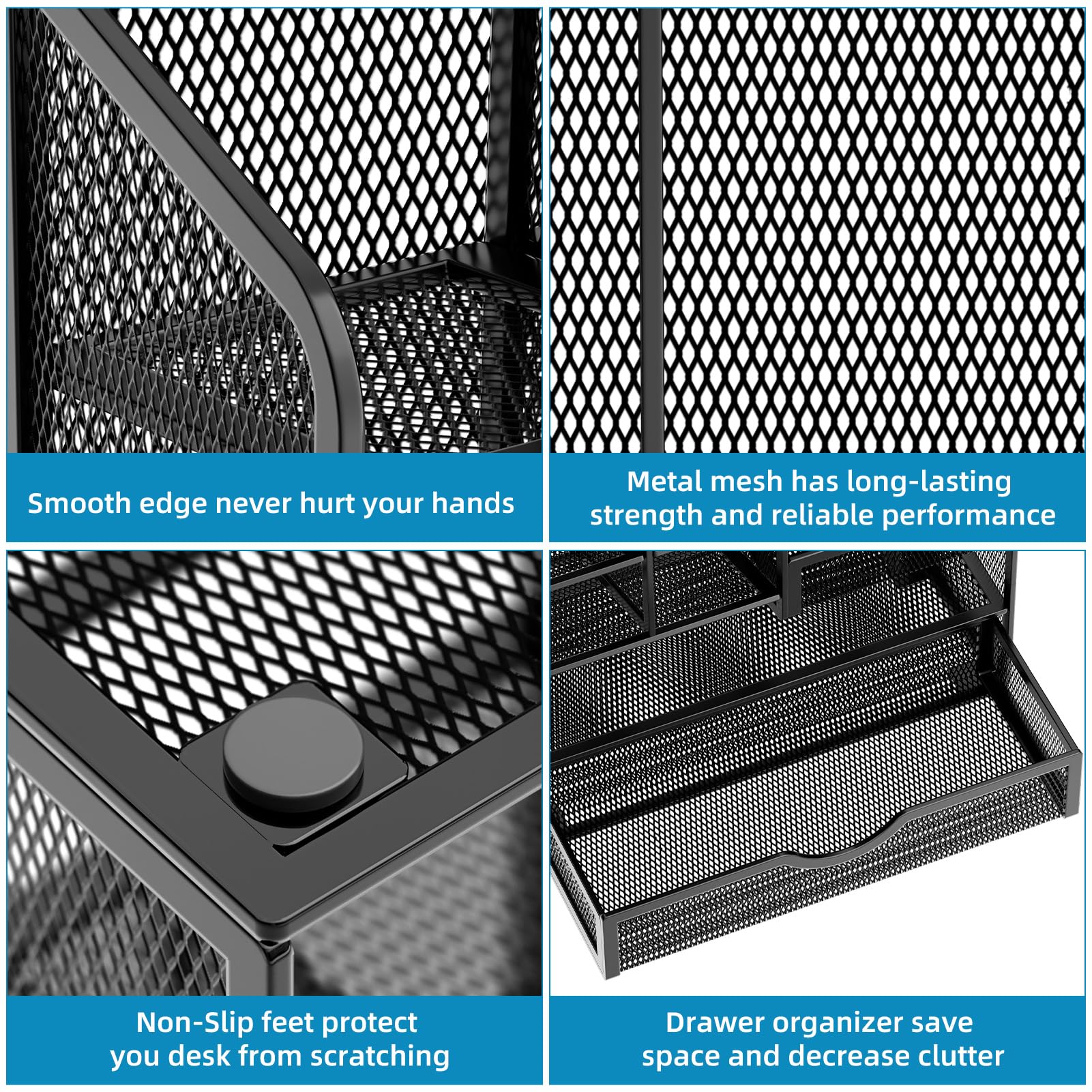 Marbrasse Mesh Pen Holder for Desk, Multi-Functional Pencil Organizer with Drawer, Desk Organizers and Accessories for Office Art Supplies (Black)