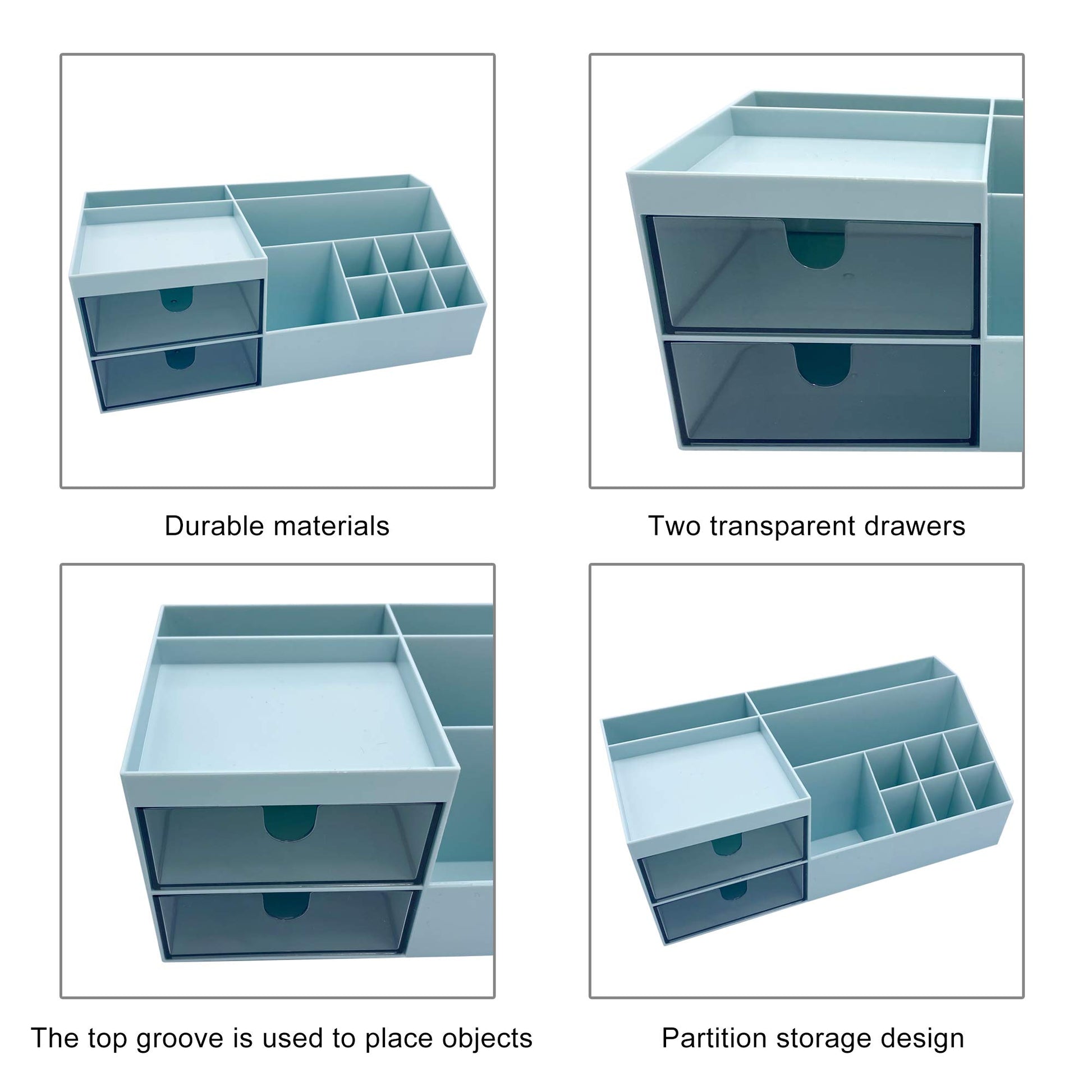 Marknor Vanity Makeup Organizer, Cosmetic Storage Organizer/Box, Mini Desk Storage for Office Supplies, Bathroom Counter or Dresser, Blue