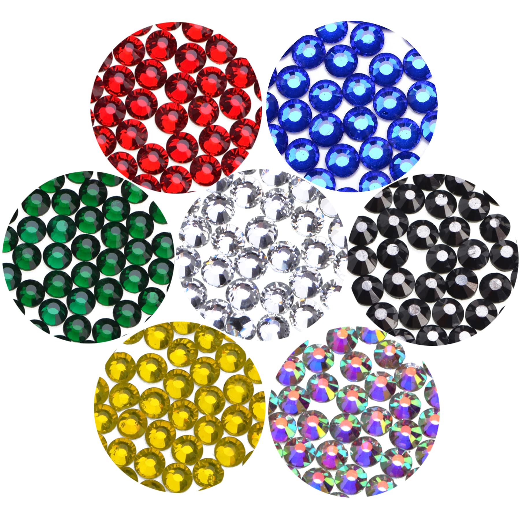- Sizes: SS16; 34 Colors: Crystal Clear, Crystal AB, Aquamarine, Champagne, Amethyst, Rose Pink, Amethyst AB, Smoked Topaz, Orange, Emerald, Peridot, Rose Gold, Blue Zircon, Golden Sun, Light Red, Blue Flame, Mine Gold, Labrador, Pink, Hematite, Sapphire, Red AB, Fuchsia, Green AB, Silver Flare, Yellow, Tanzanite, Sapphire AB, Topaz, Light Sapphire, Paradise Shine, Siam, Vitrail Medium, Black Diamond; Each Grid has one color EXCEPT Crystal Clear and Crystal AB 2 Grids each.