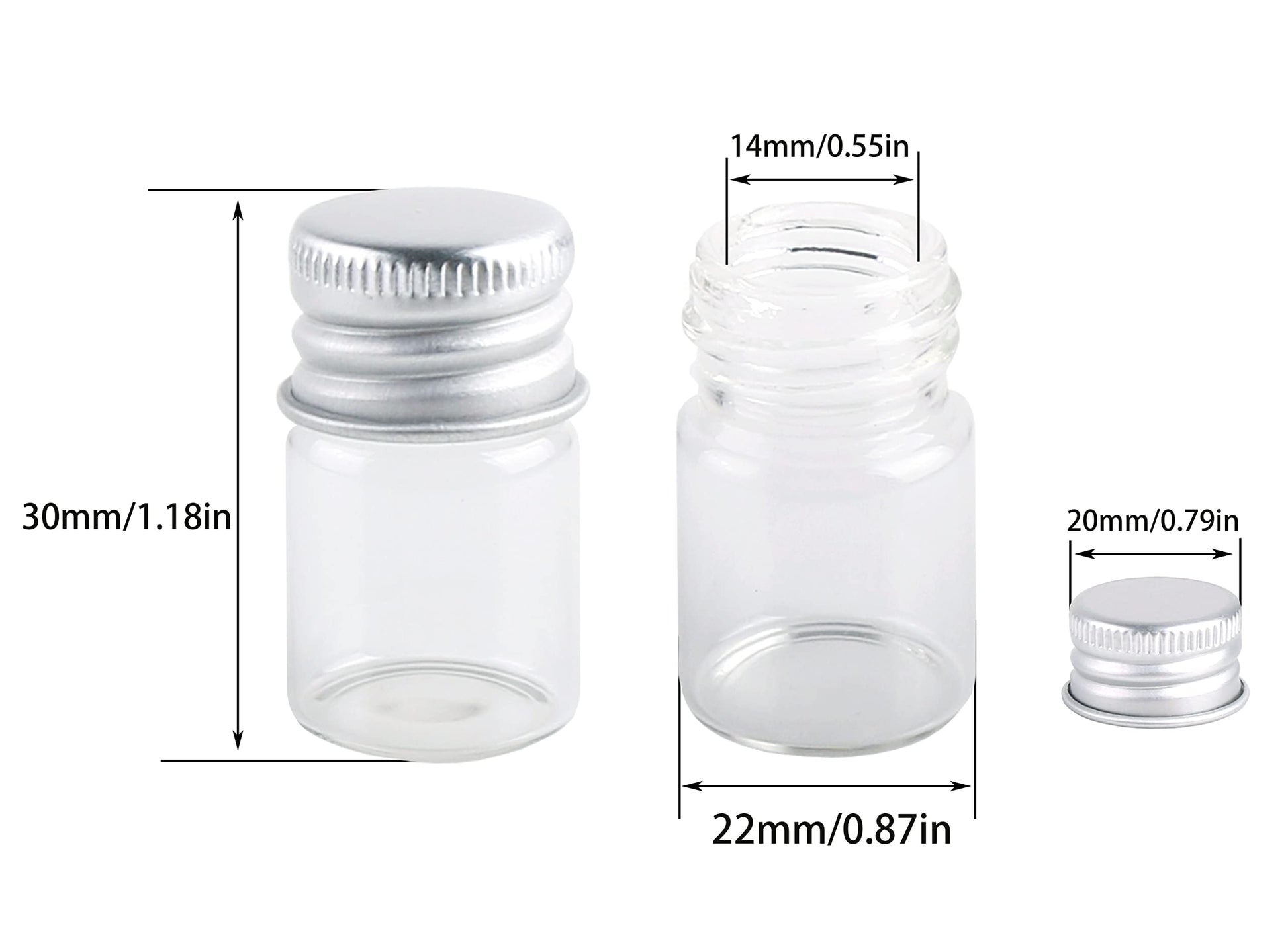 These high quality clear glass bottles with screw caps, are perfect for storing,display,decoration.The tiny vials could be used as sample/message bottle,wedding favors party decorations,liquid storage,art DIY.