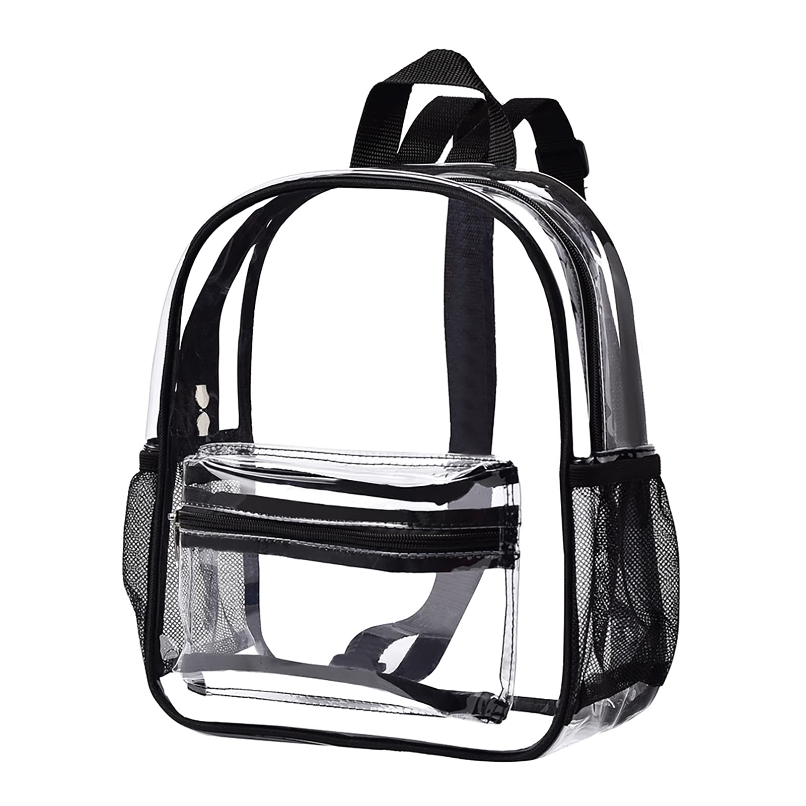 MAY TREE Clear Backpack for Stadium Events, 12x11x4.5 Inch Small Clear Backpack for Concert Festival Sports Outdoor - Black