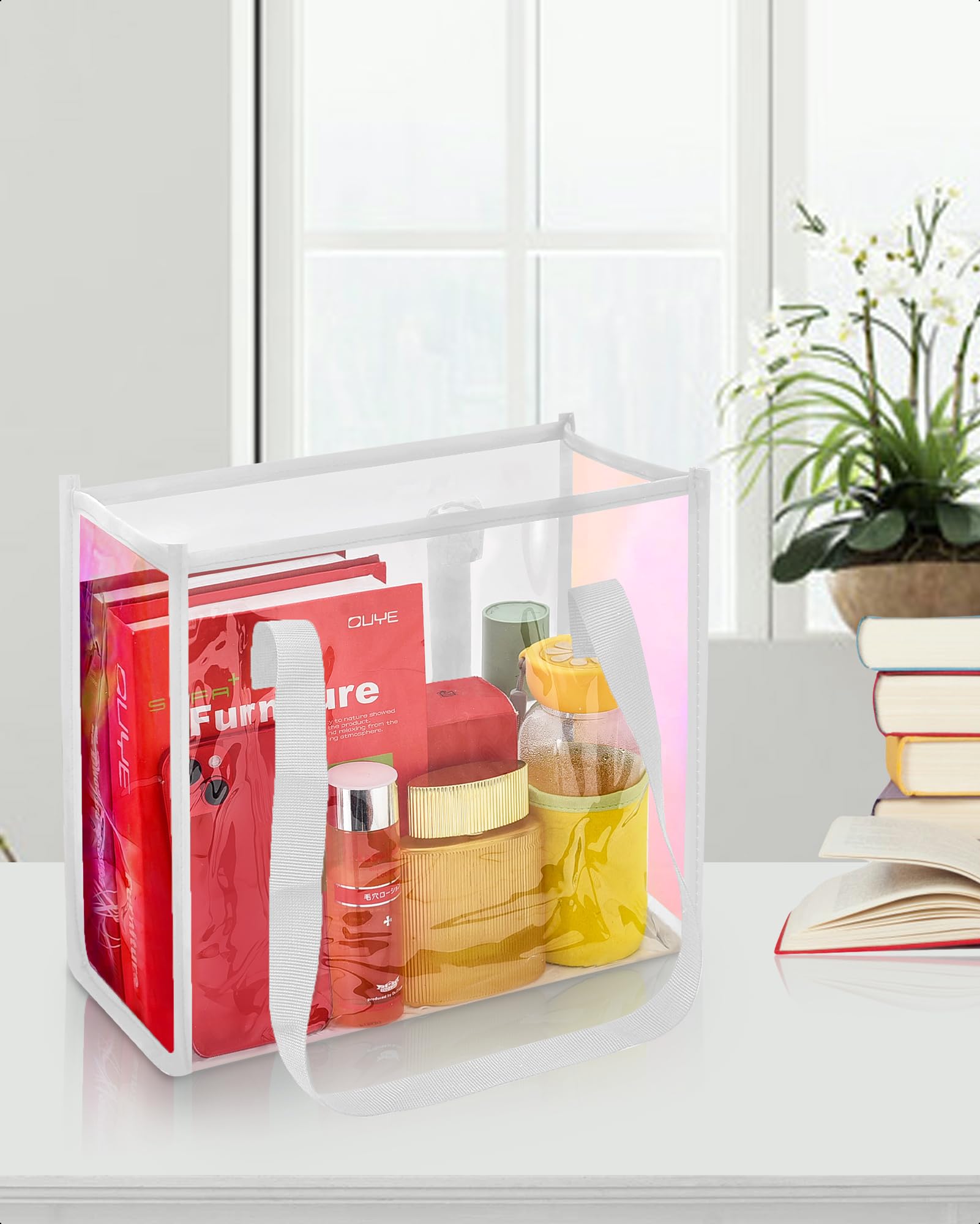 - 【Clear Stadium Bag】- light and comfortable on shoulder, comes with a smaller removable bag inside, a pretty clear tote bag for any occasion.