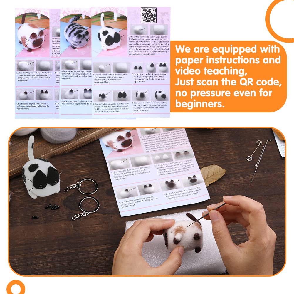 - High quality needle felt wool: We provide you with enough high quality wool, which can be used to make 3 cute little animal dolls. The roving wool is fluffy, soft and fine, which is the perfect material for your creative production
