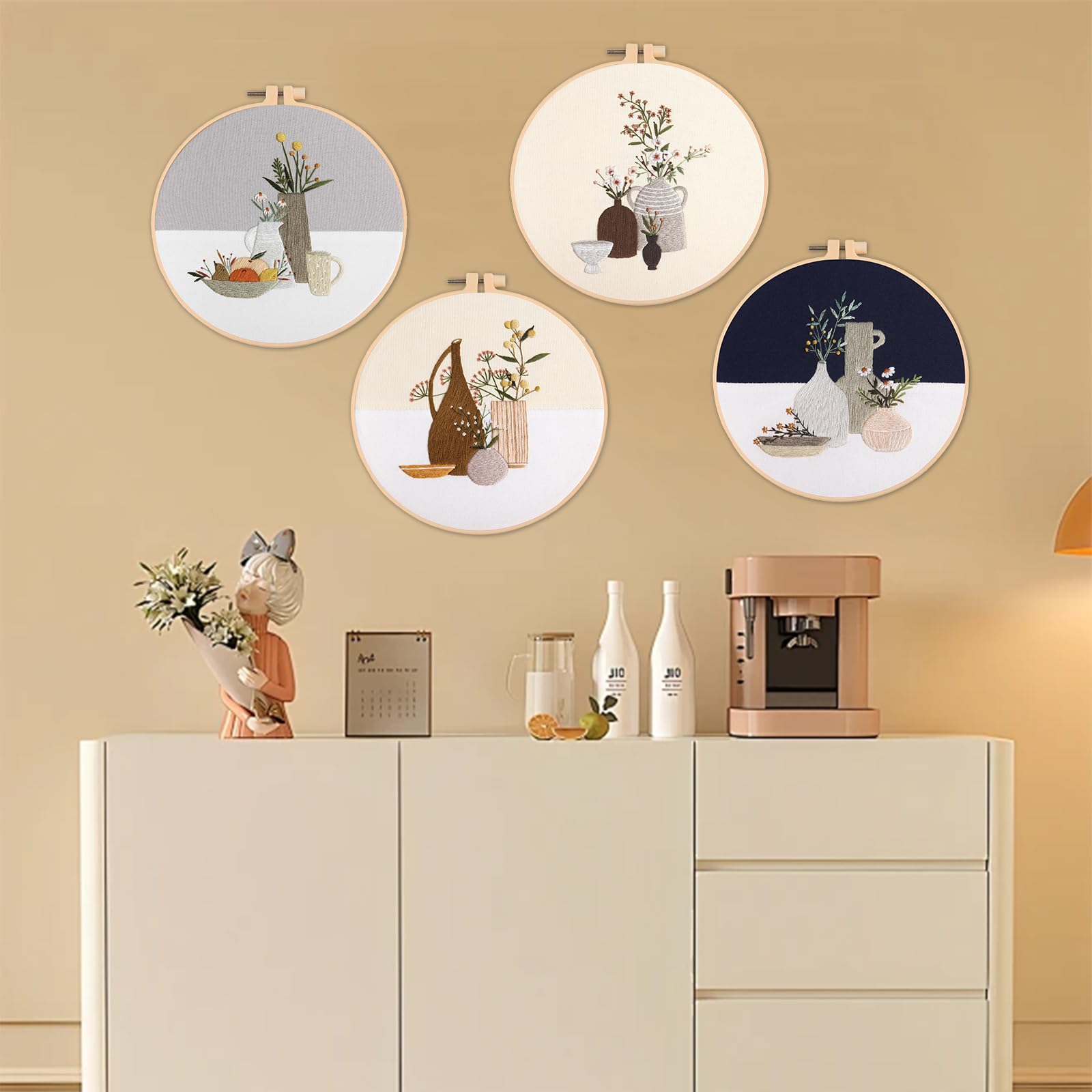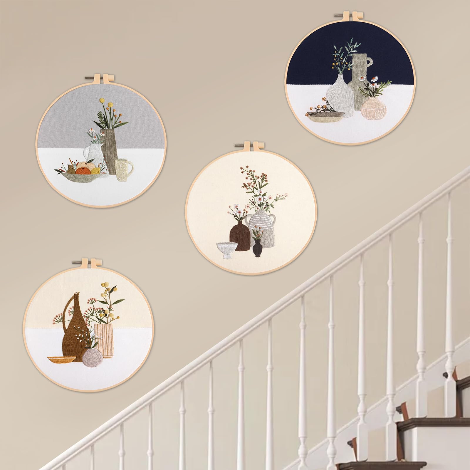 Maydear 4 Sets Embroidery Kit,Embroidery Kit for Beginners Adults, Punch Needle Kit Cross Stitch Kits with Embroidery Hoop and Instructions,Hand Embroidery Starter Kit (vase)