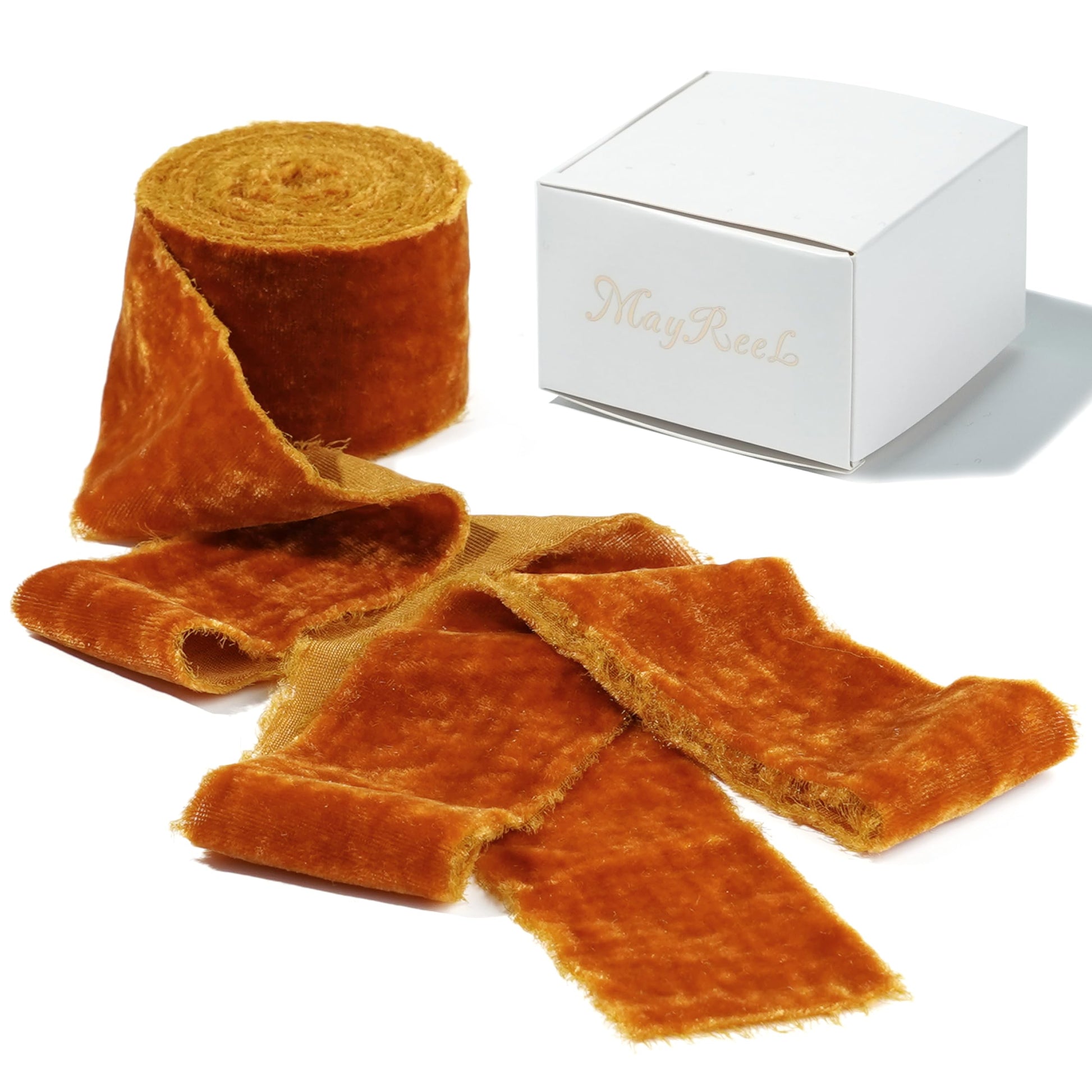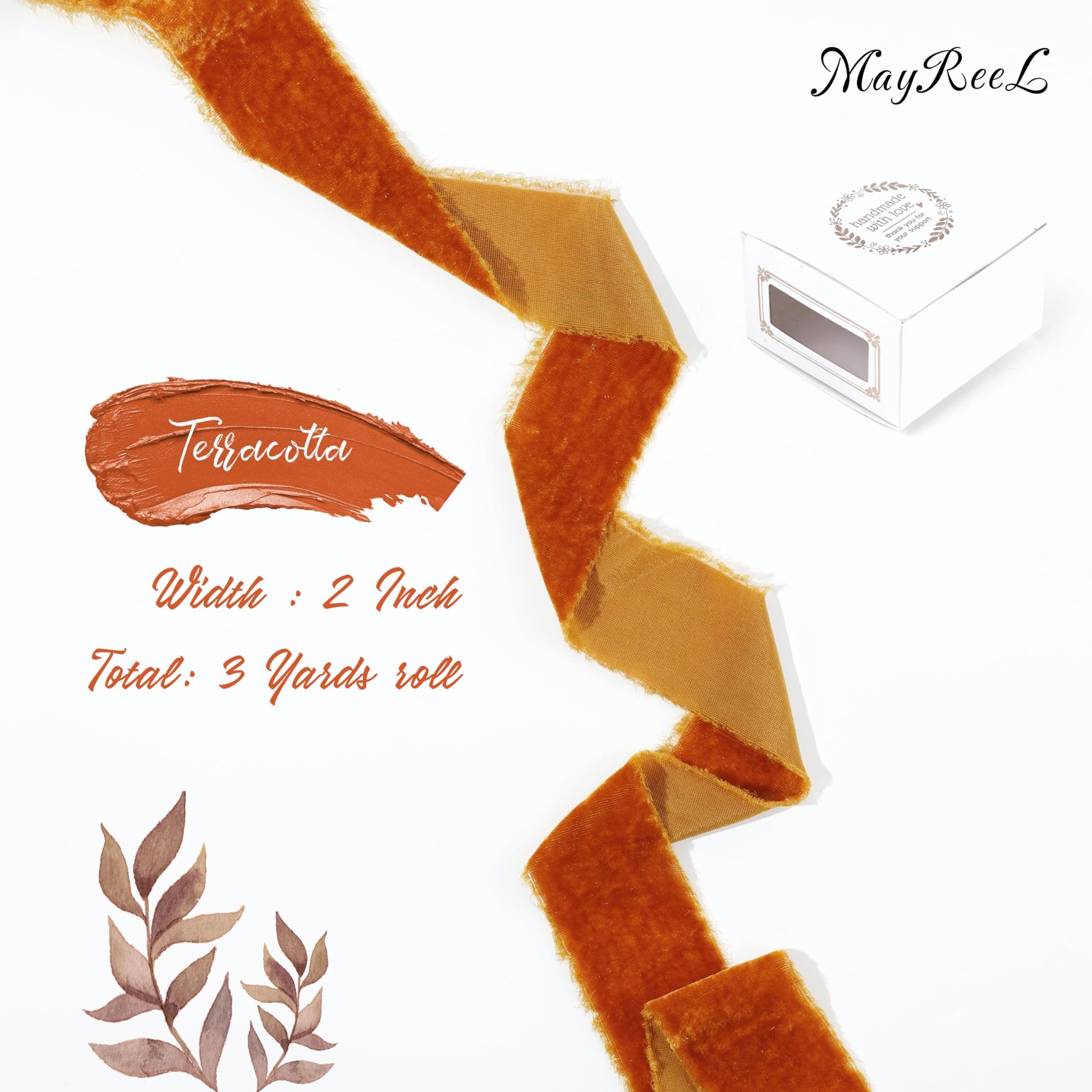Terracotta Velvet Ribbon 2 Inch Hand Torn Burnt Orange Silk Frayed Edge Ribbon for Thanksgiving Bridal Bouquets Invitations Wedding Vow Books Gift Baskets 3 Yards