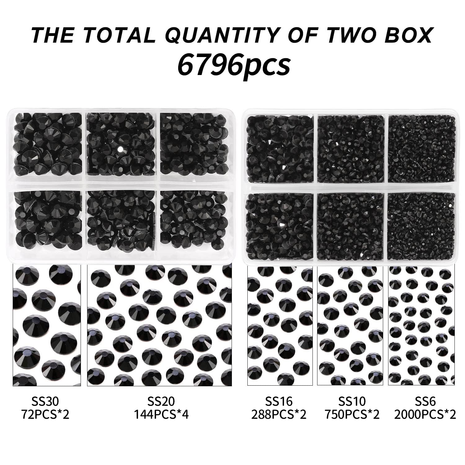 MEIBITE 6796PCS Black Hotfix Rhinestones Crystal Stones Glass for Fabric Clothes Shirts Sparkly Flat Back Round with Tweezers and Picking Pen (SS6~SS30 Set)