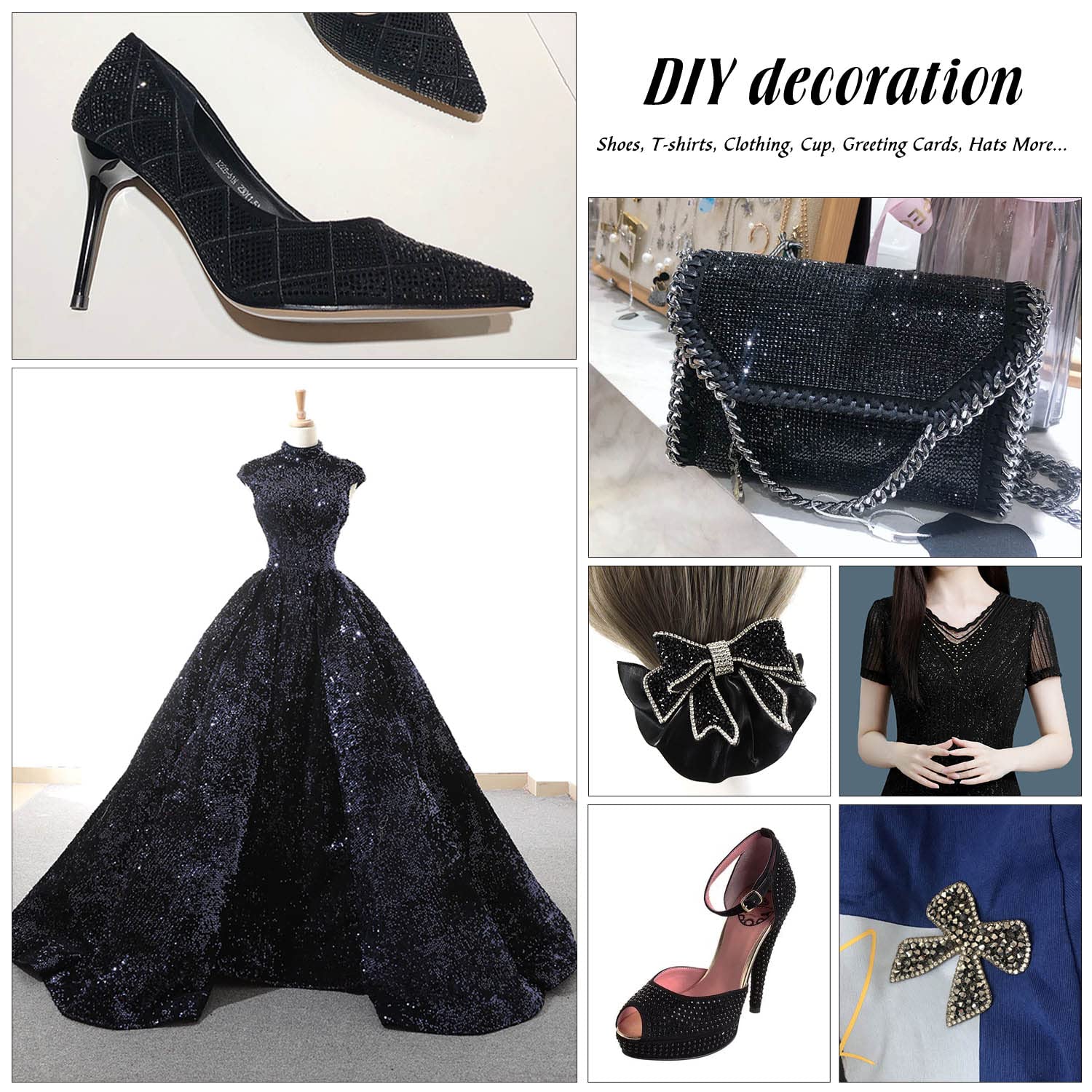 - Use tweezers and Picking Pen gem picker to pick rhinestones, Hotfix Applicator or household ironer, heat press machine for heat repair and fixation, after the heat activated glue melts, stick on the object and lightly press the rhinestones for about 5 seconds. Can also be glued with E6000 glue