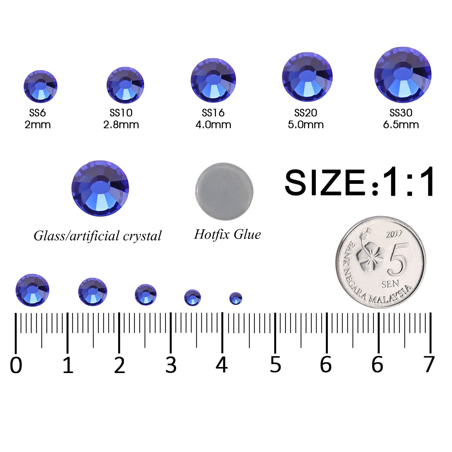 MEIBITE 6796PCS Blue Hotfix Rhinestones Crystal Stones Glass for Fabric Clothes Shirts Sparkly Flat Back Round with Tweezers and Picking Pen (SS6~SS30 Set)