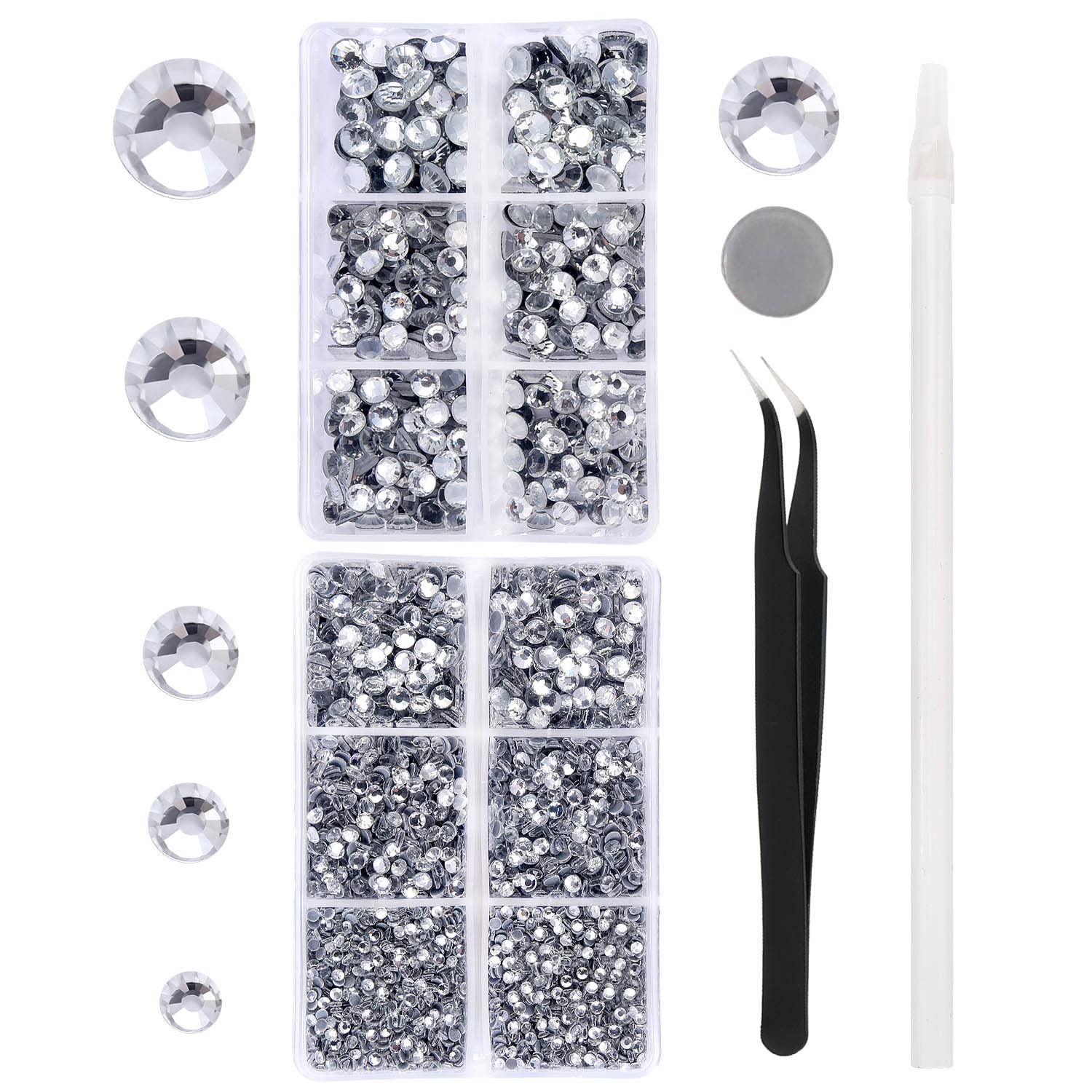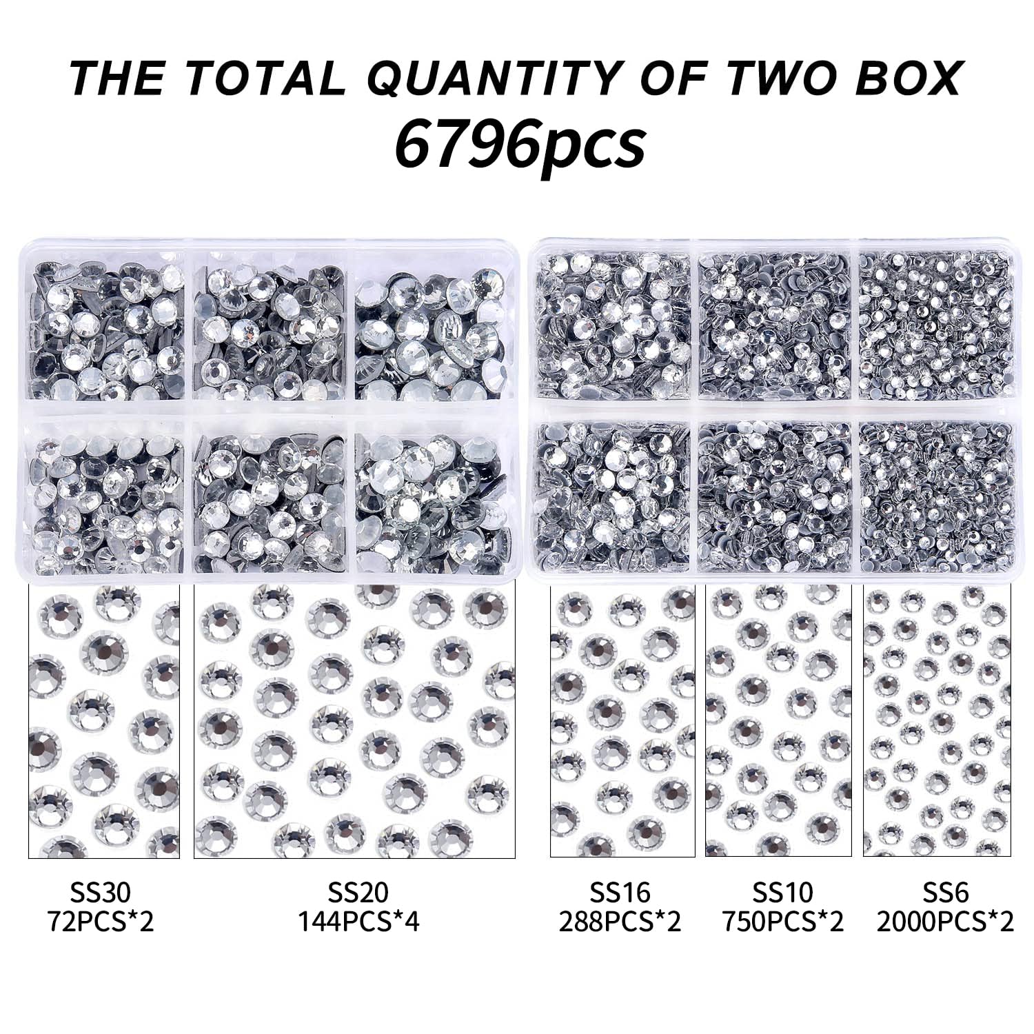 MEIBITE 6796PCS Clear Hotfix Rhinestones Crystal Stones Glass for Fabric Clothes Shirts Sparkly Flat Back Round with Tweezers and Picking Pen (SS6~SS30 Set)