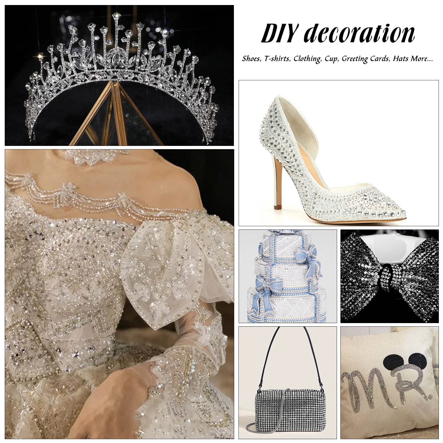 - Use tweezers and Picking Pen gem picker to pick rhinestones, Hotfix Applicator or household ironer, heat press machine for heat repair and fixation, after the heat activated glue melts, stick on the object and lightly press the rhinestones for about 5 seconds. Can also be glued with E6000 glue.